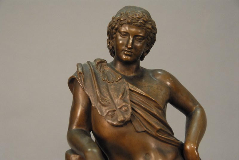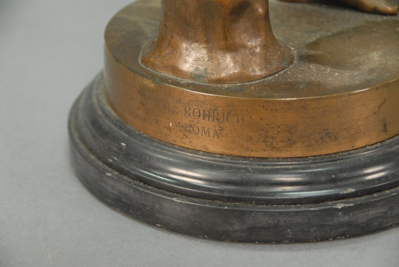 A. Rohrich Roma bronze sculpture of partially robed man marked A. Rohrich Roma. ht. 18 1/2in.