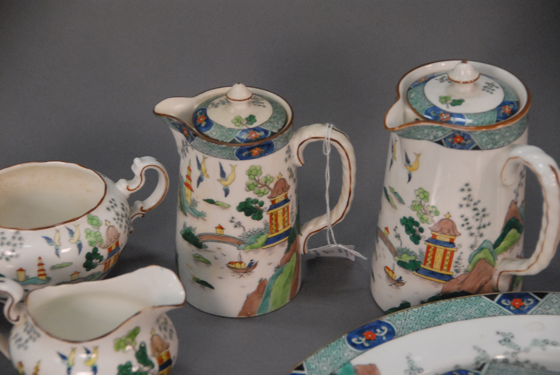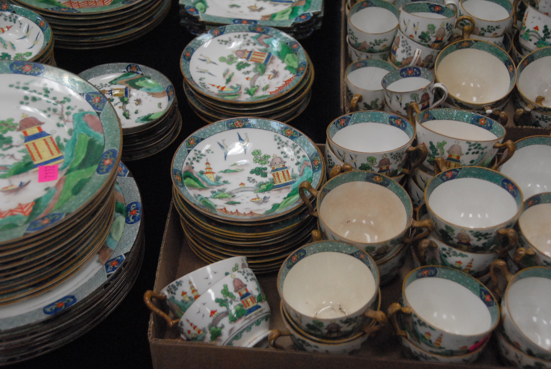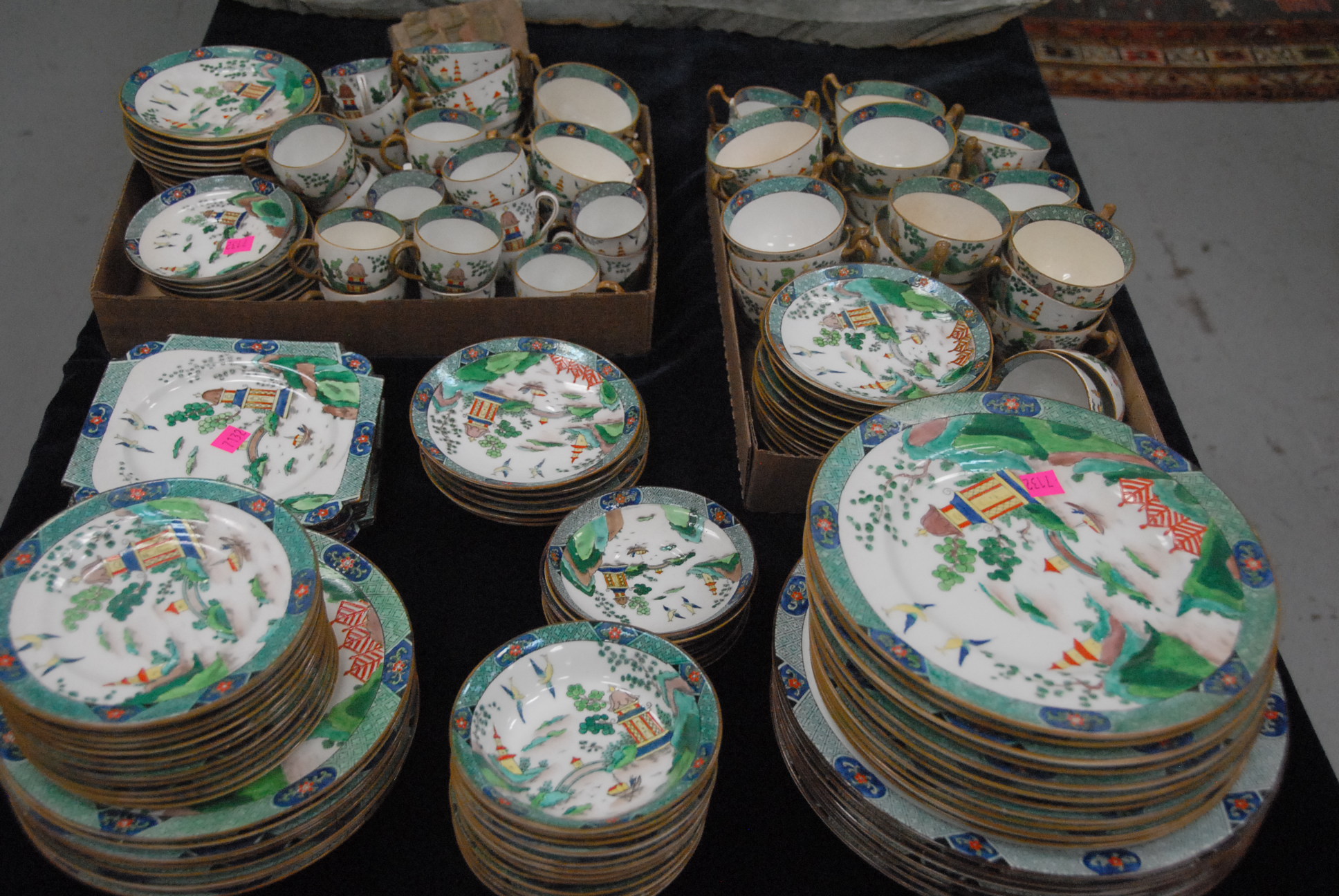 Lot 117: Assembled set of Aynsley China dinnerware, Oriental pattern and matching Crown Staffordshire, 165 pieces in total.