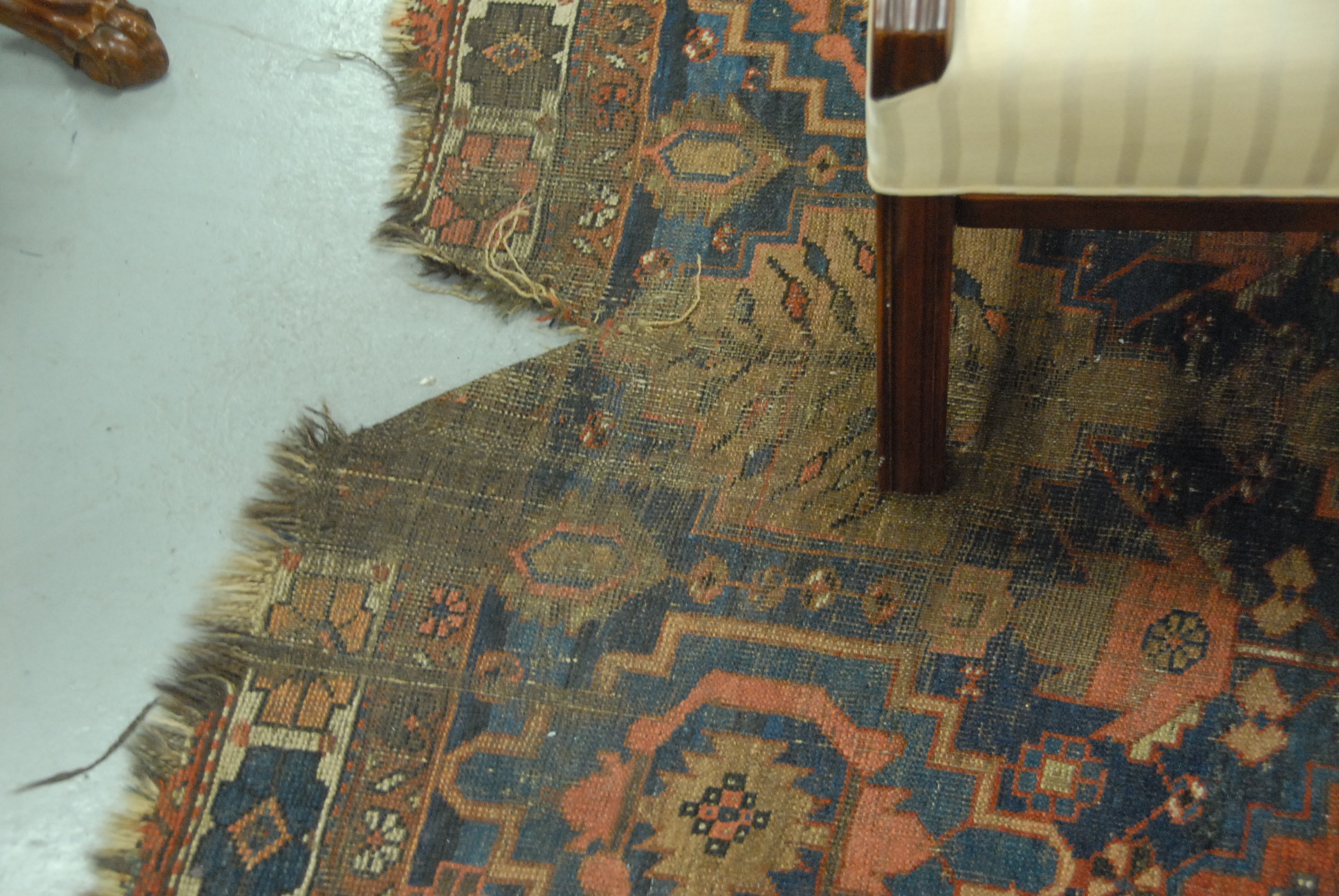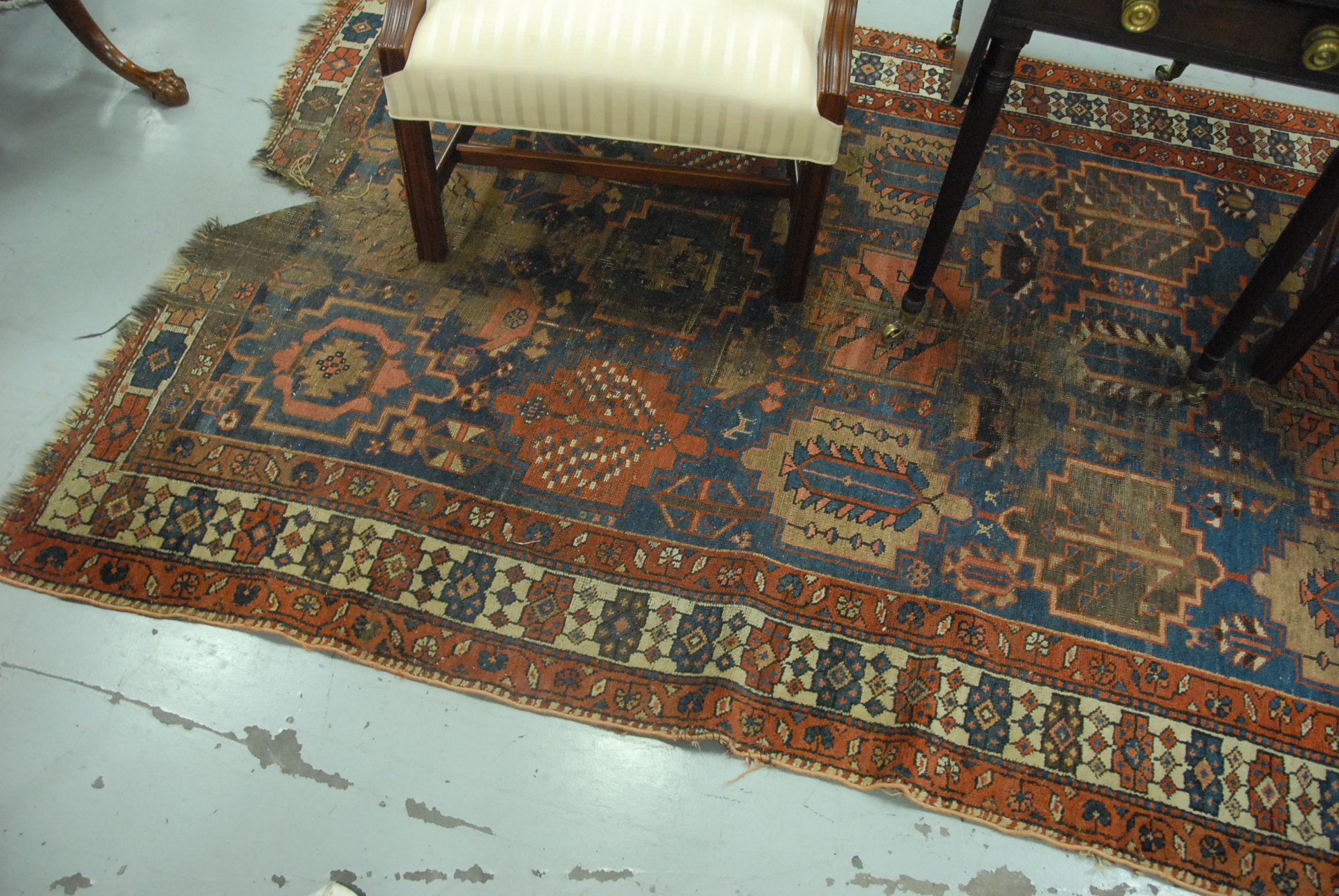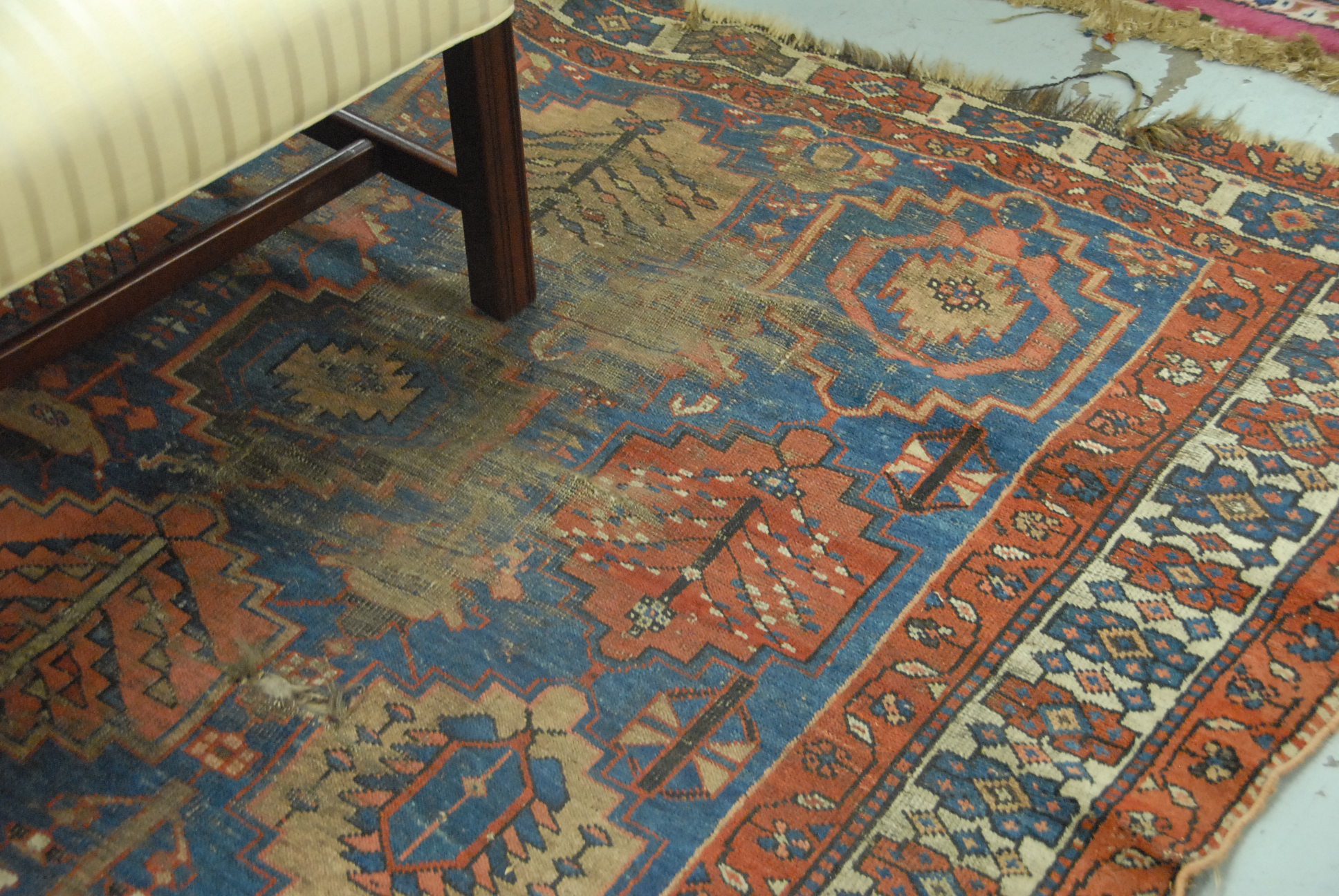 Caucasian Oriental hall runner worn, 5’3 x 9’9.