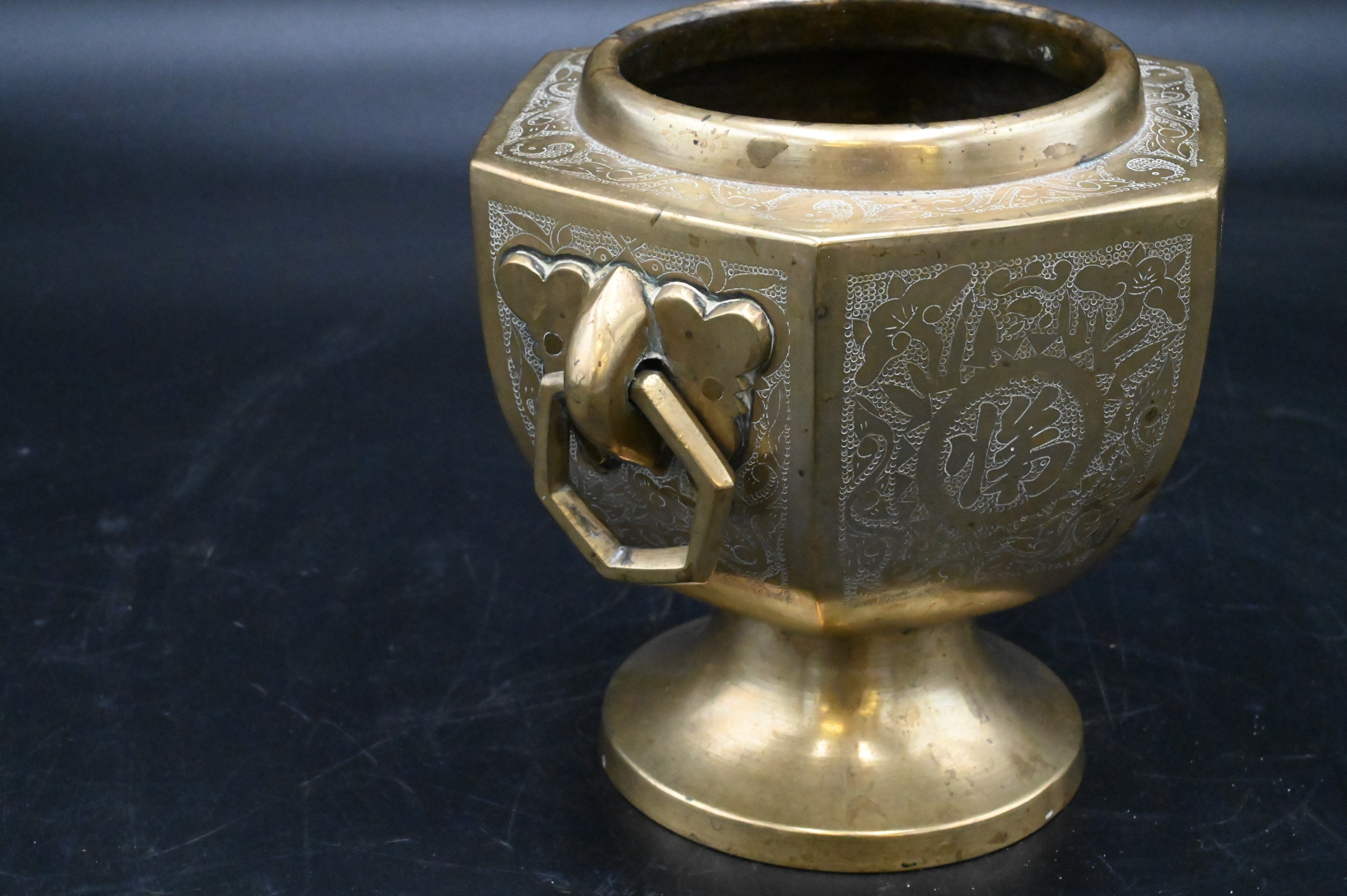Chinese Brass Censer, with ring handles height 6 inches diameter 6 inches, Provenance: West Hartford Estate of Dorothy Elsner.