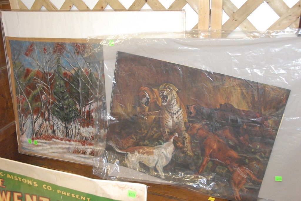 Four pieces poster As the Sun Went Down, two unframed pastels, and framed plaque.