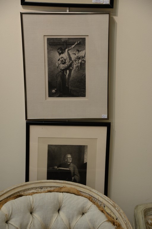 Group of four etchings including Clarence W. Anderson etching, Nude, signed lower right: C.W. Anderson, plate size 10 3/4 x 7 1/2 Alphonse Legros, Portrait of Edward J. Poynter Charles Albert Waltner 1846-1925, portrait etching, The Parish Clerk and unsigned etching of Christ at Cross. plate sizes 8 3/4 x 5 3/4 to 10 3/4 x 7 1/2 Provenance: Estate of Arthur C. Pinto, MD