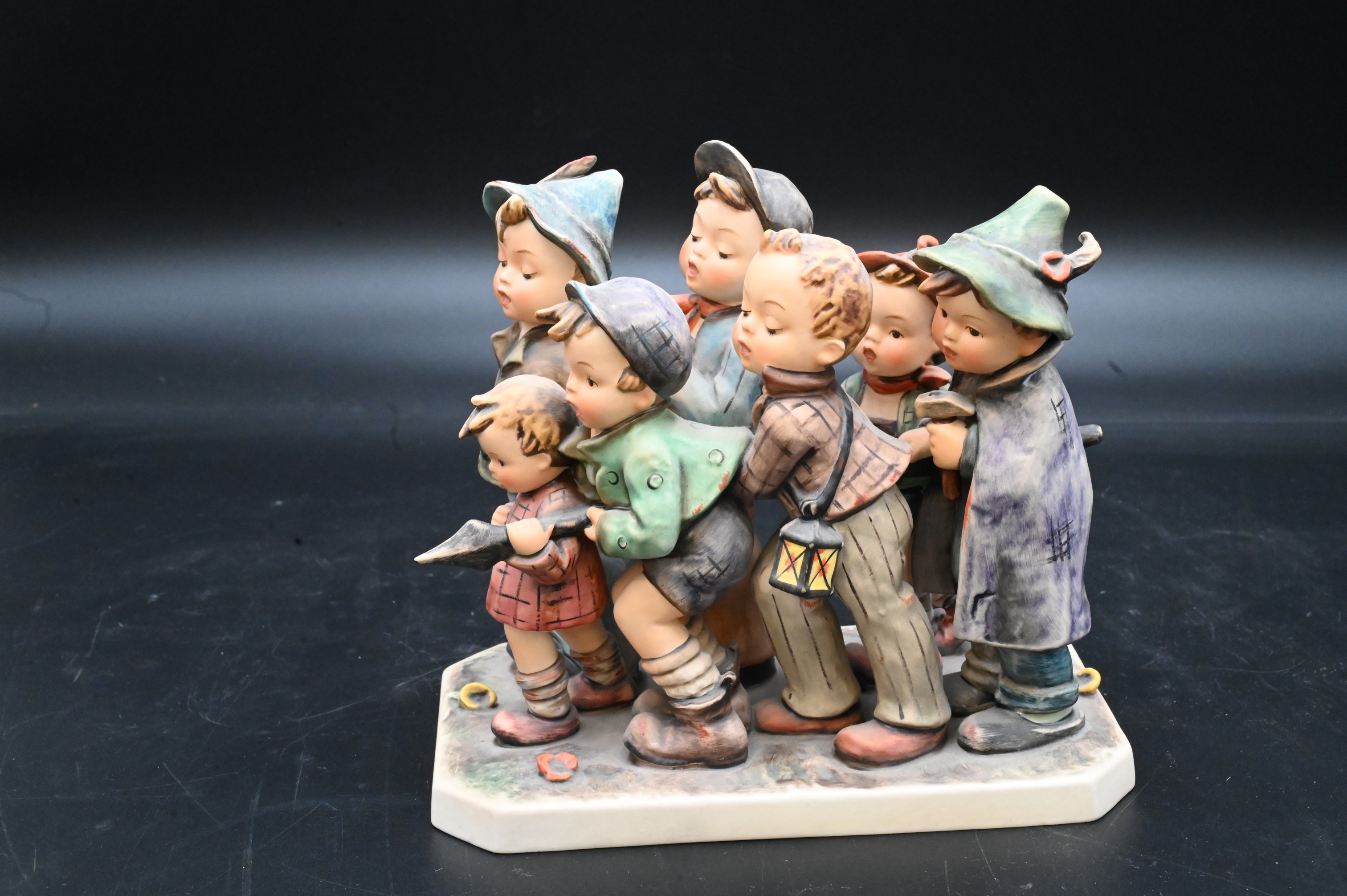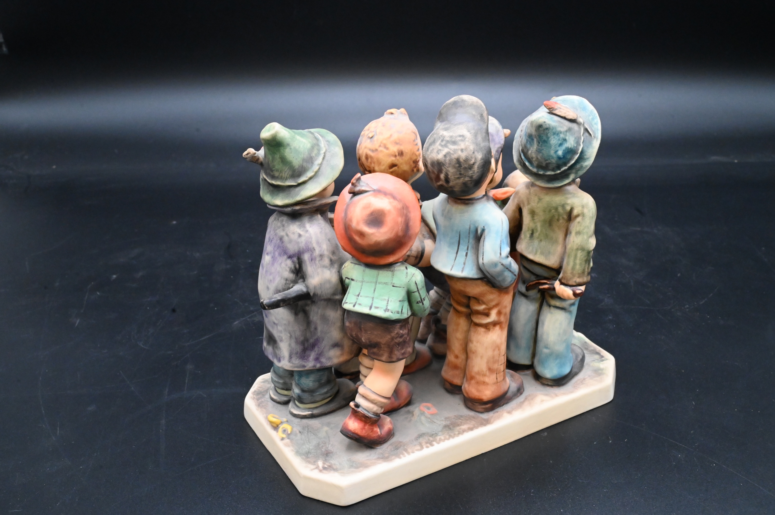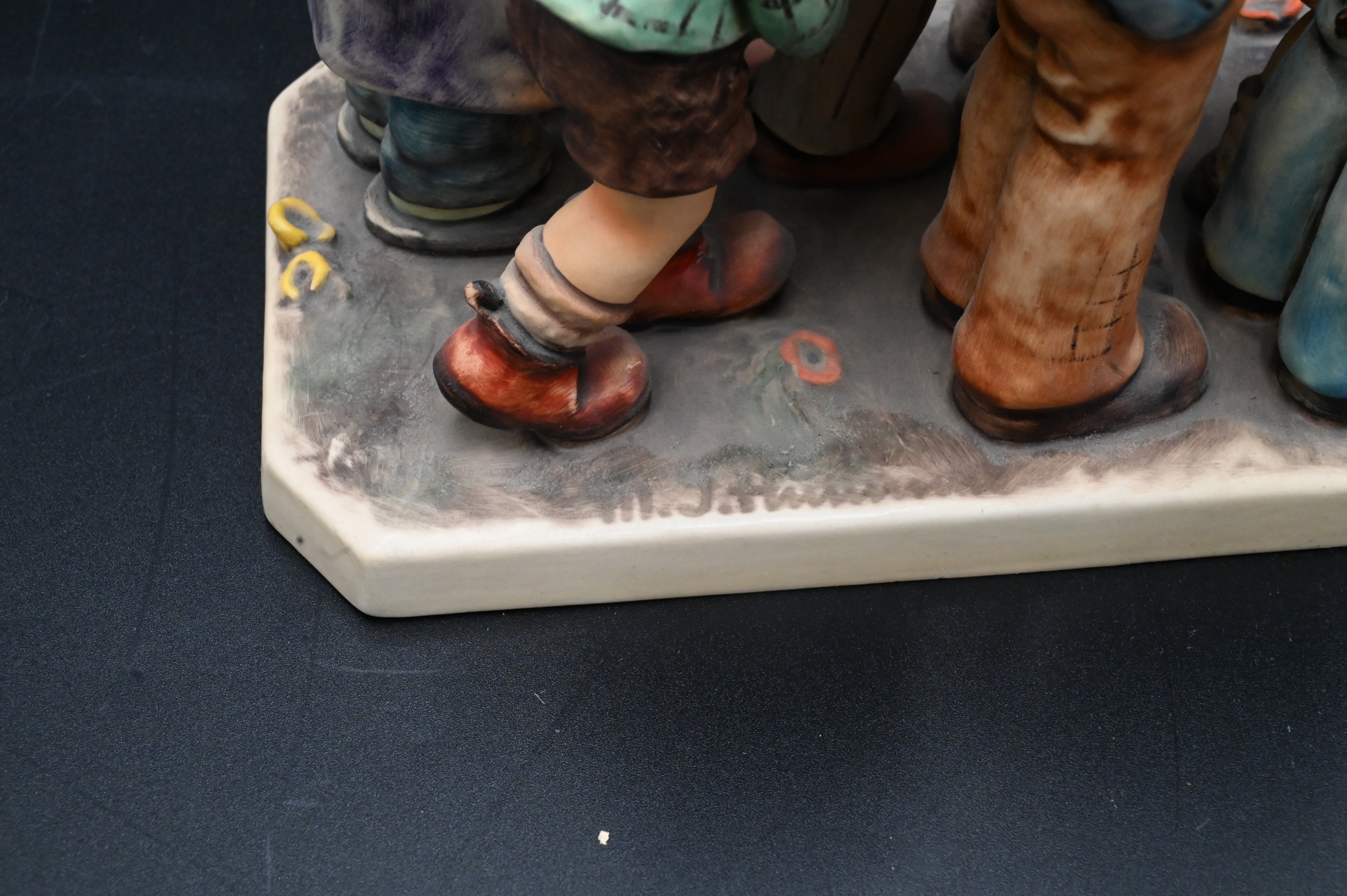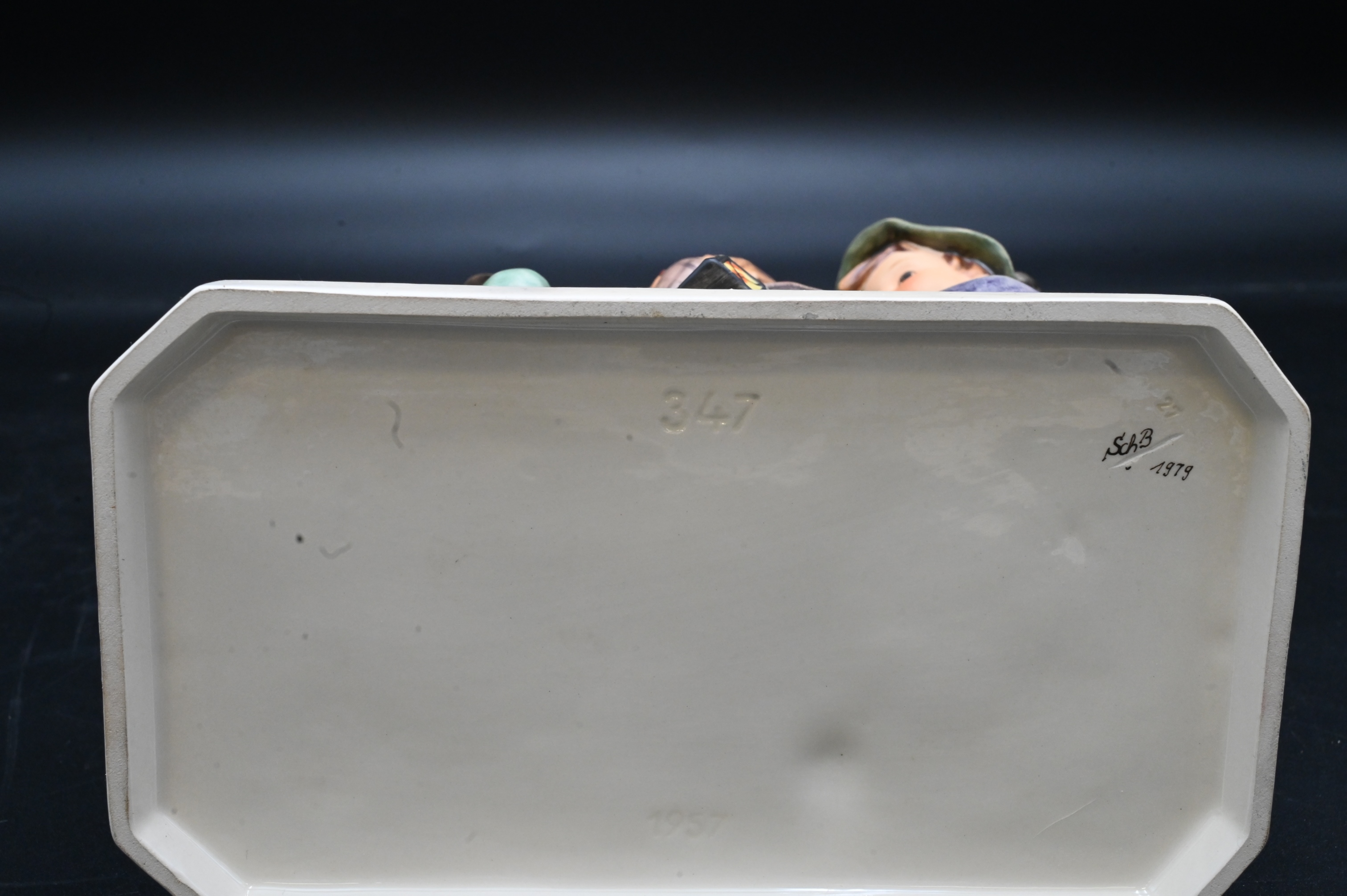 Hummel “Adventure Bound”, #347 figurine group, circa 1970 – 1979, having Goebel Bee mark, height 7 1/2 inches, length 8 inches.