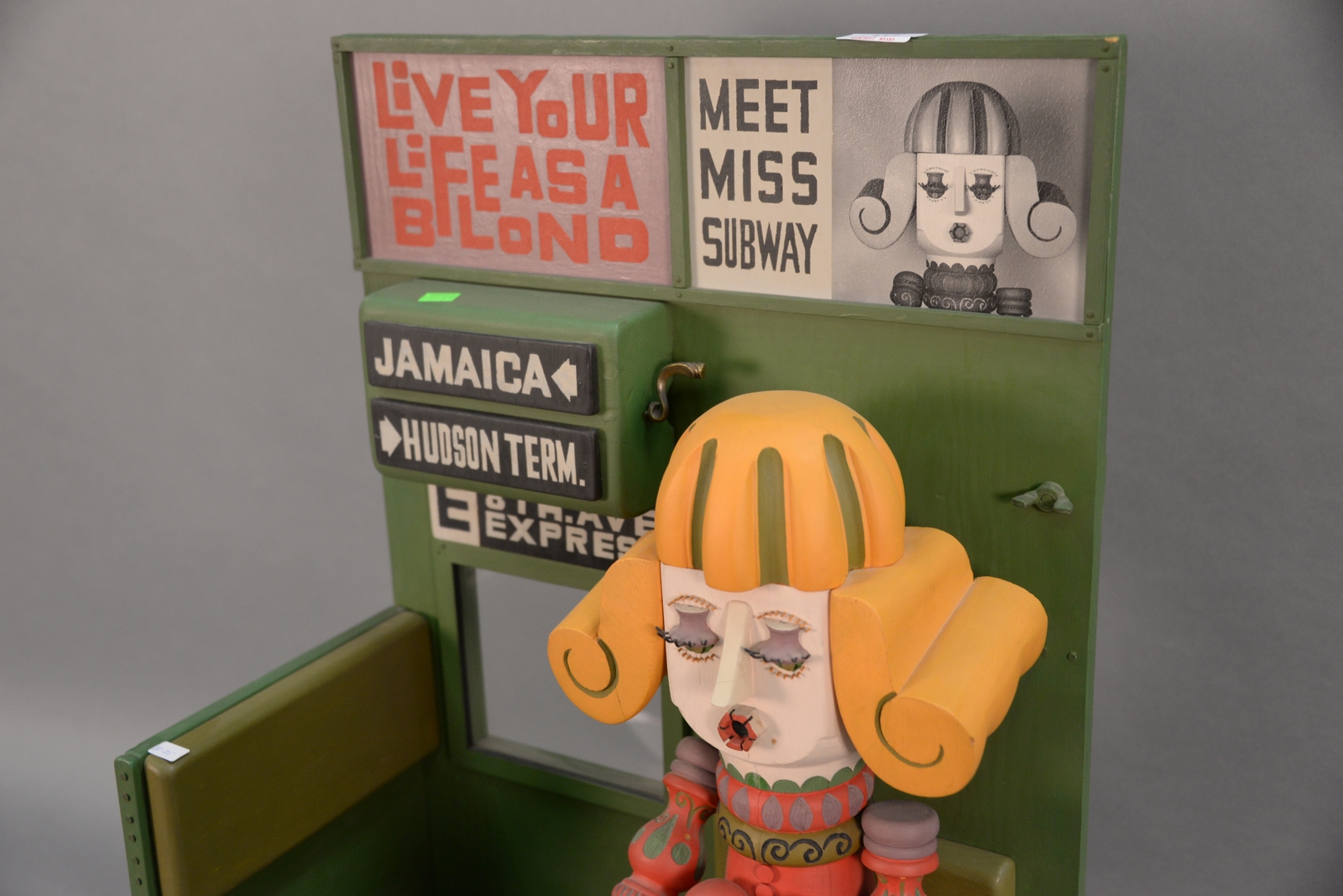 Jacqueline Fogel wood sculpture, Live Your Life as a Blonde. ht. 31in.