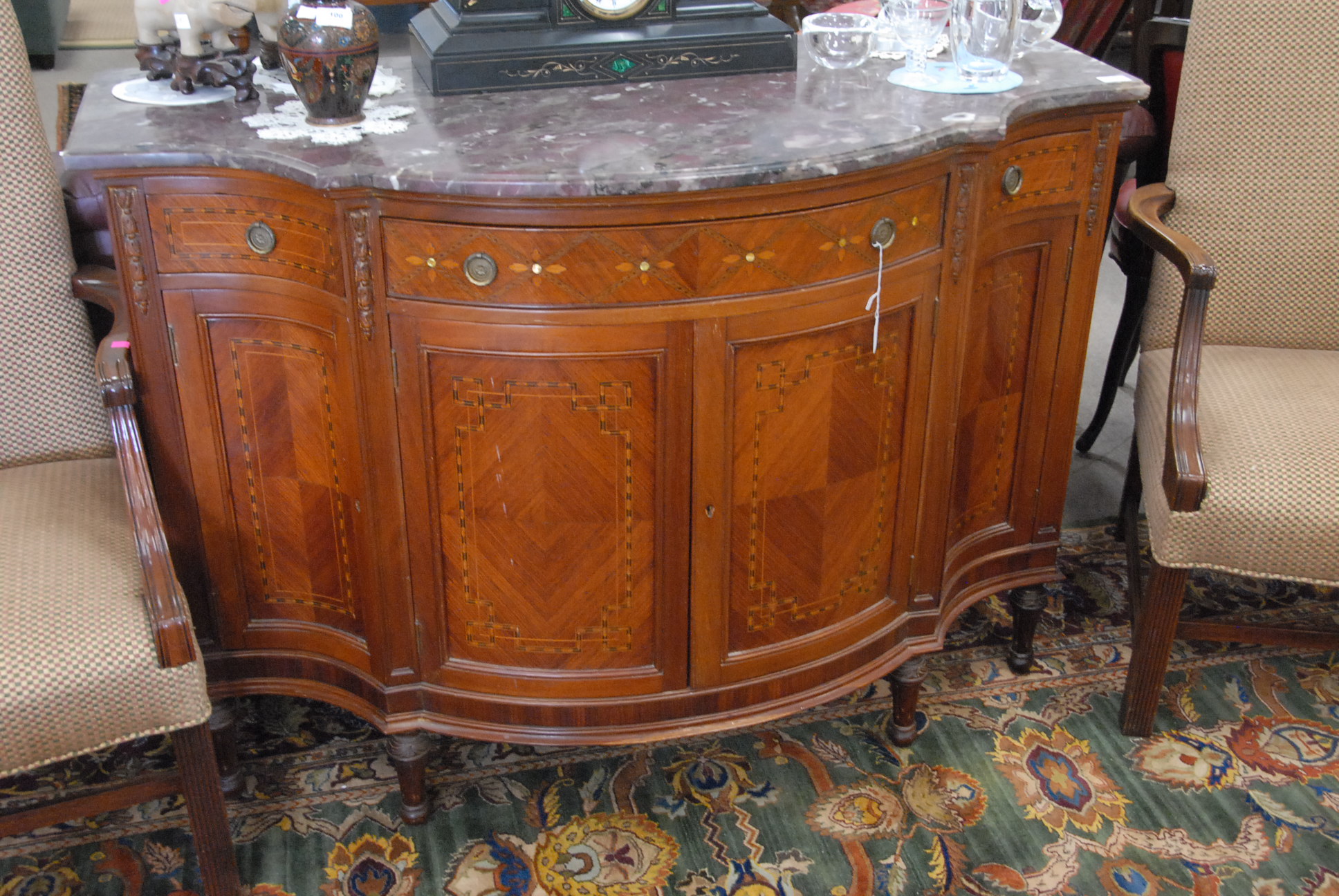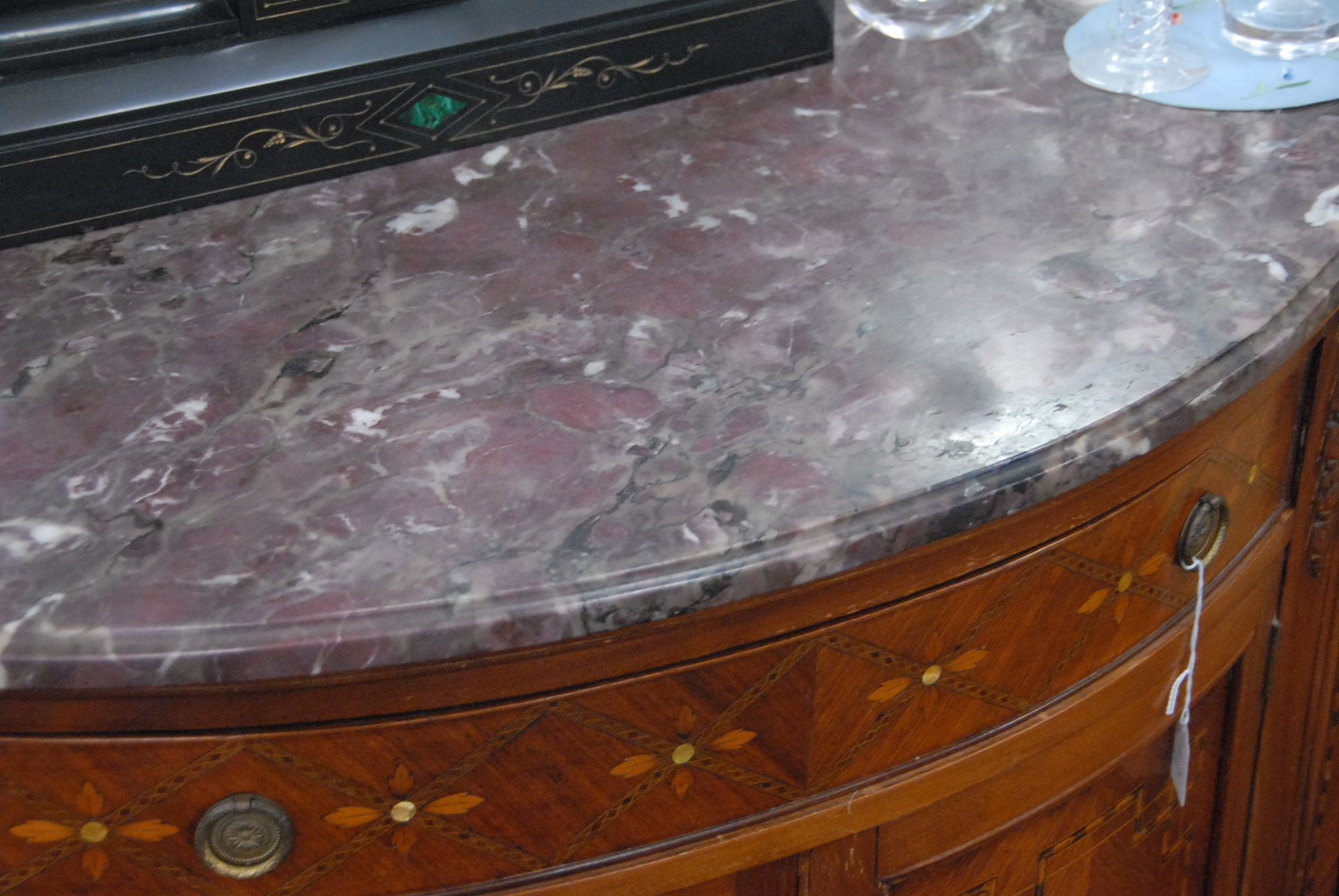 Lot 117: Louis XVI style side cabinet with purple mottled marble top. ht. 37in., lg. 51 1/2in., dp. 24in.