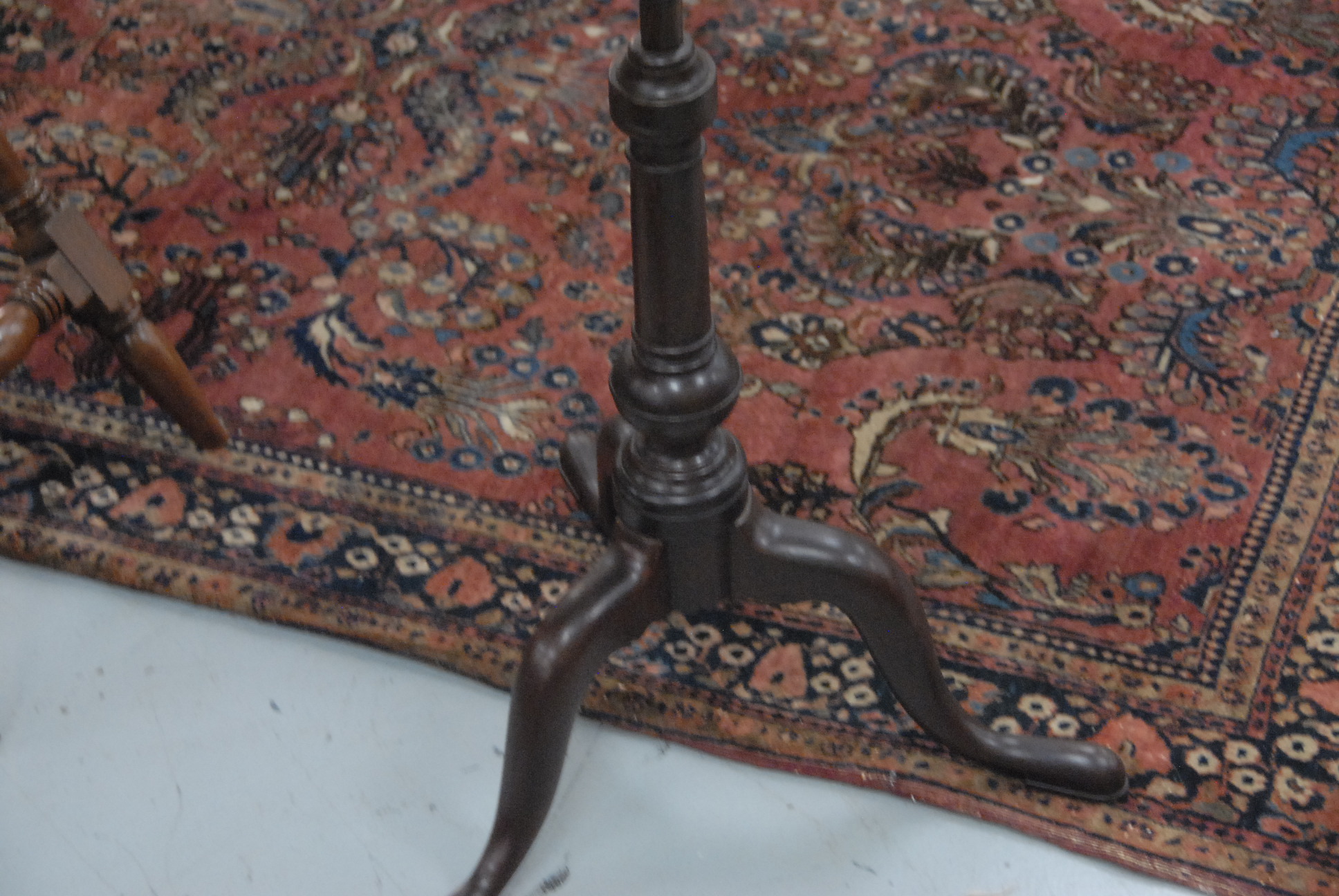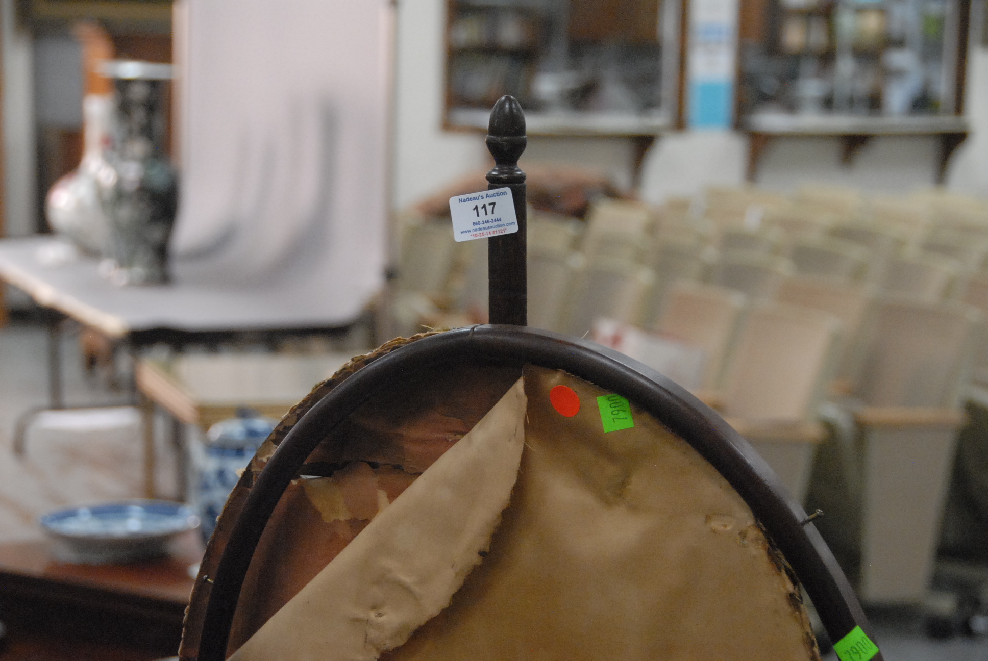 Lot 117: Mahogany pole screen with oval screen on turned shaft with tripod base. oval screen: 21 x 16 1/2 total ht. 60 1/2 in. Provenance: Property from a Private Collection Sold for the Benefit of the Virginia Historical Society.