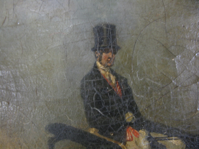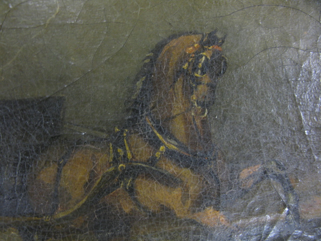 Oil on canvas mounted on board of a horse drawn coach unsigned 19th century