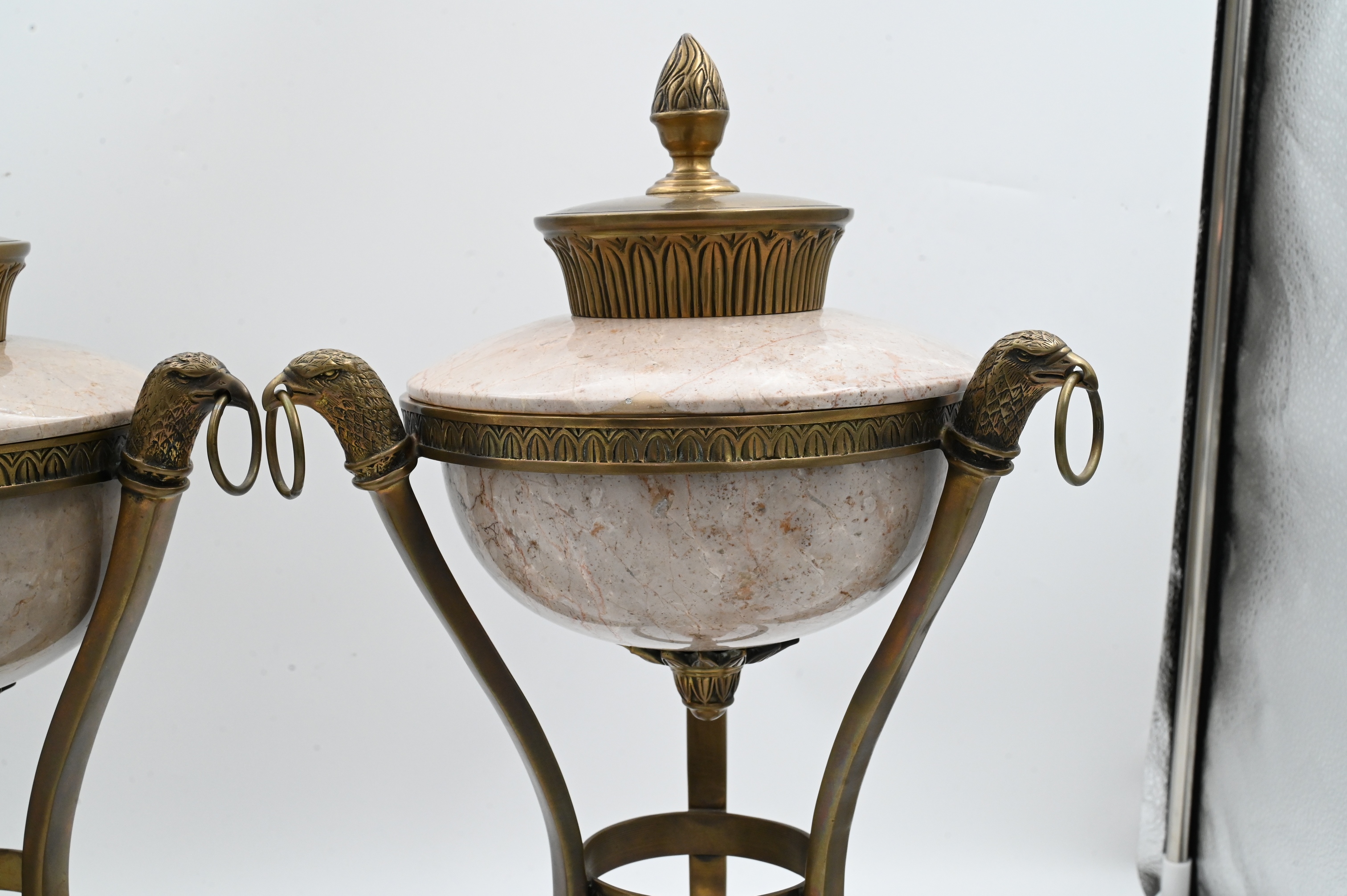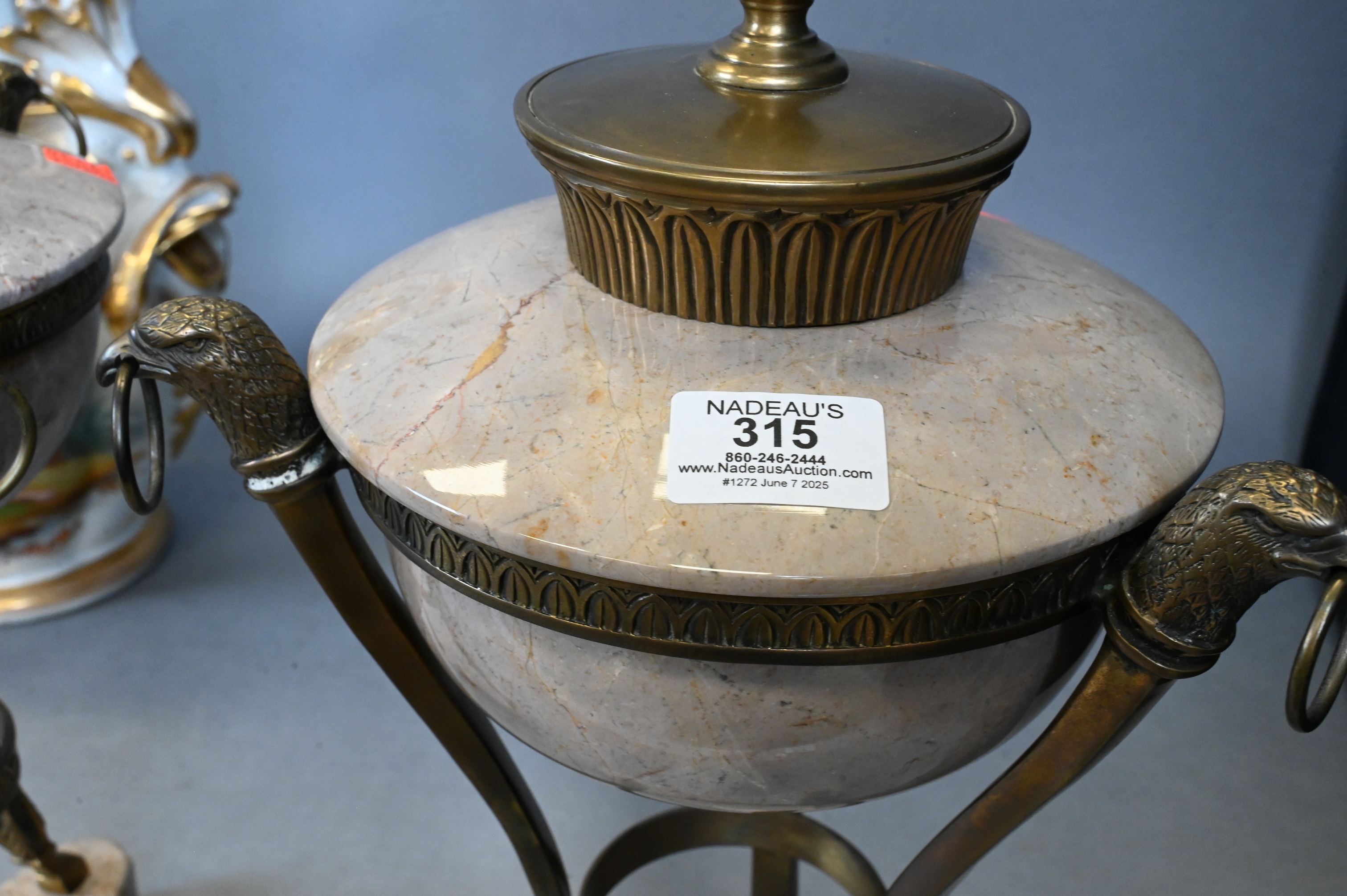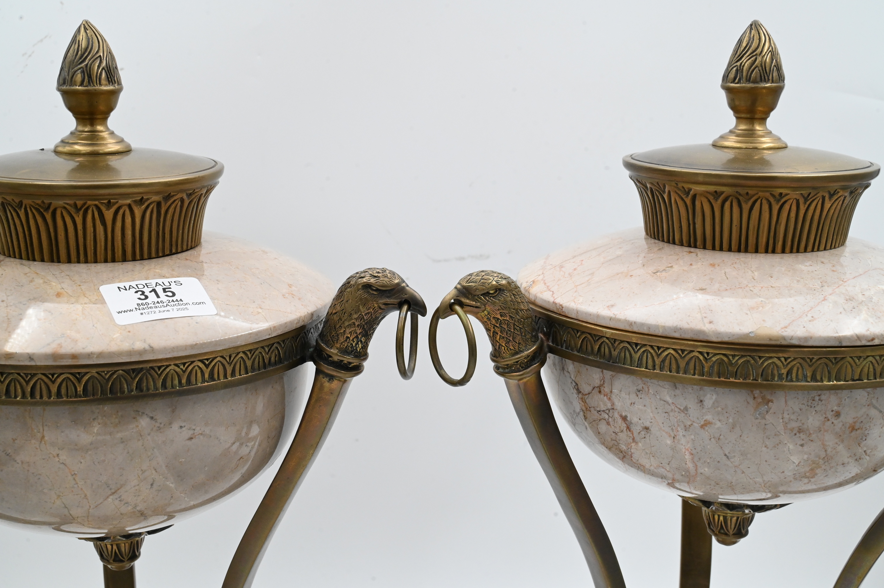 Lot 117: Pair Empire Style Marble Tripod Urns