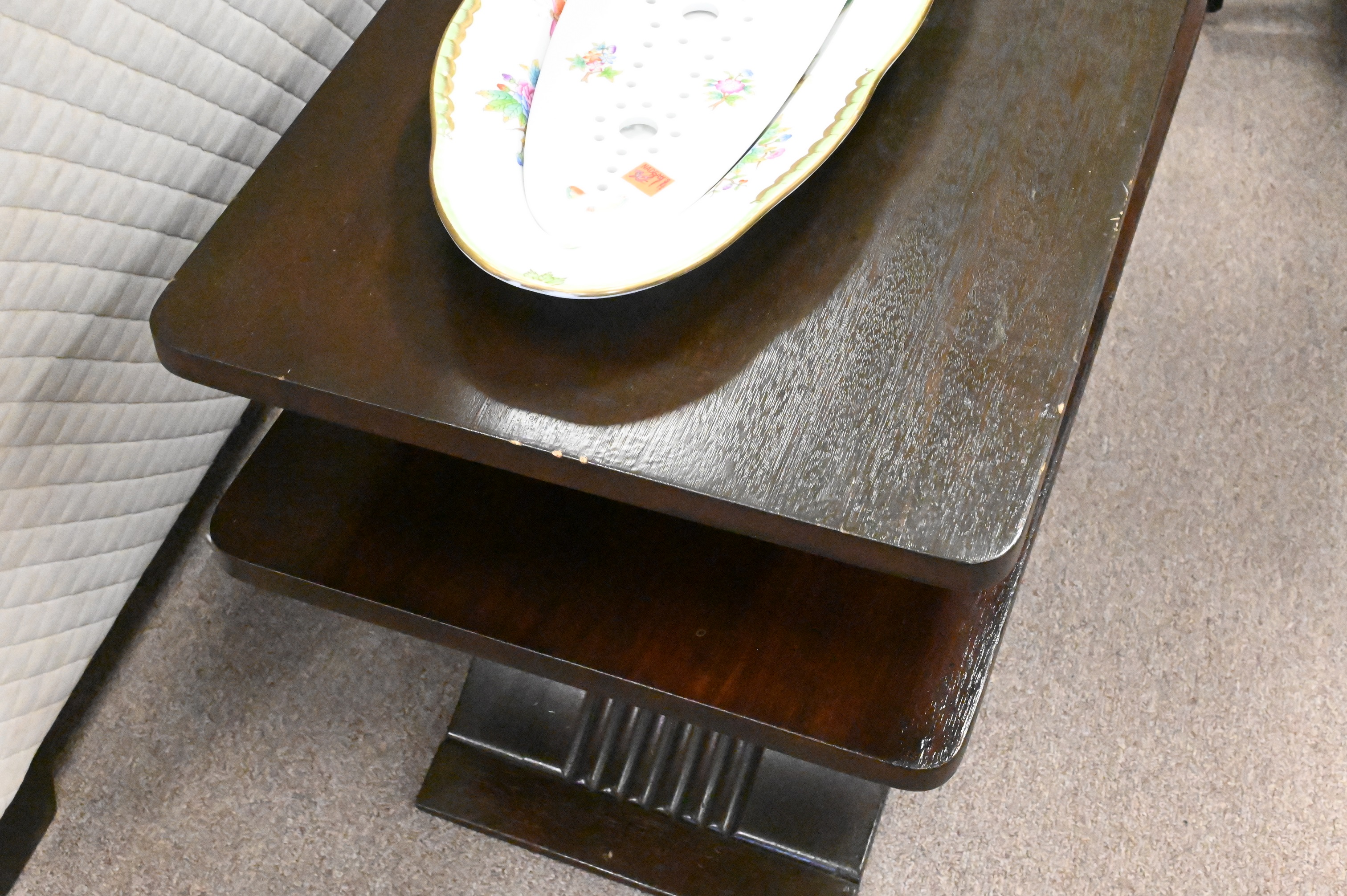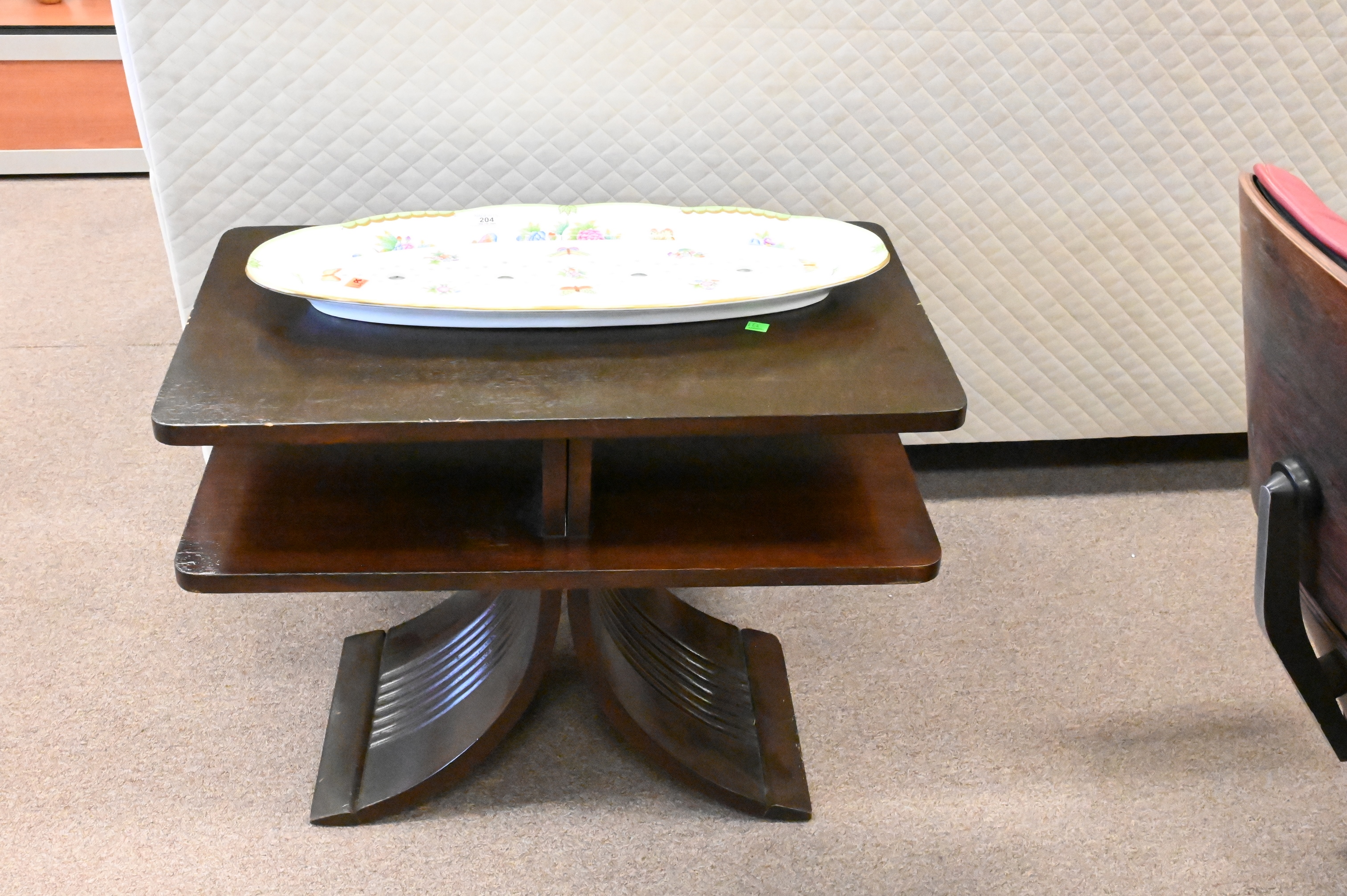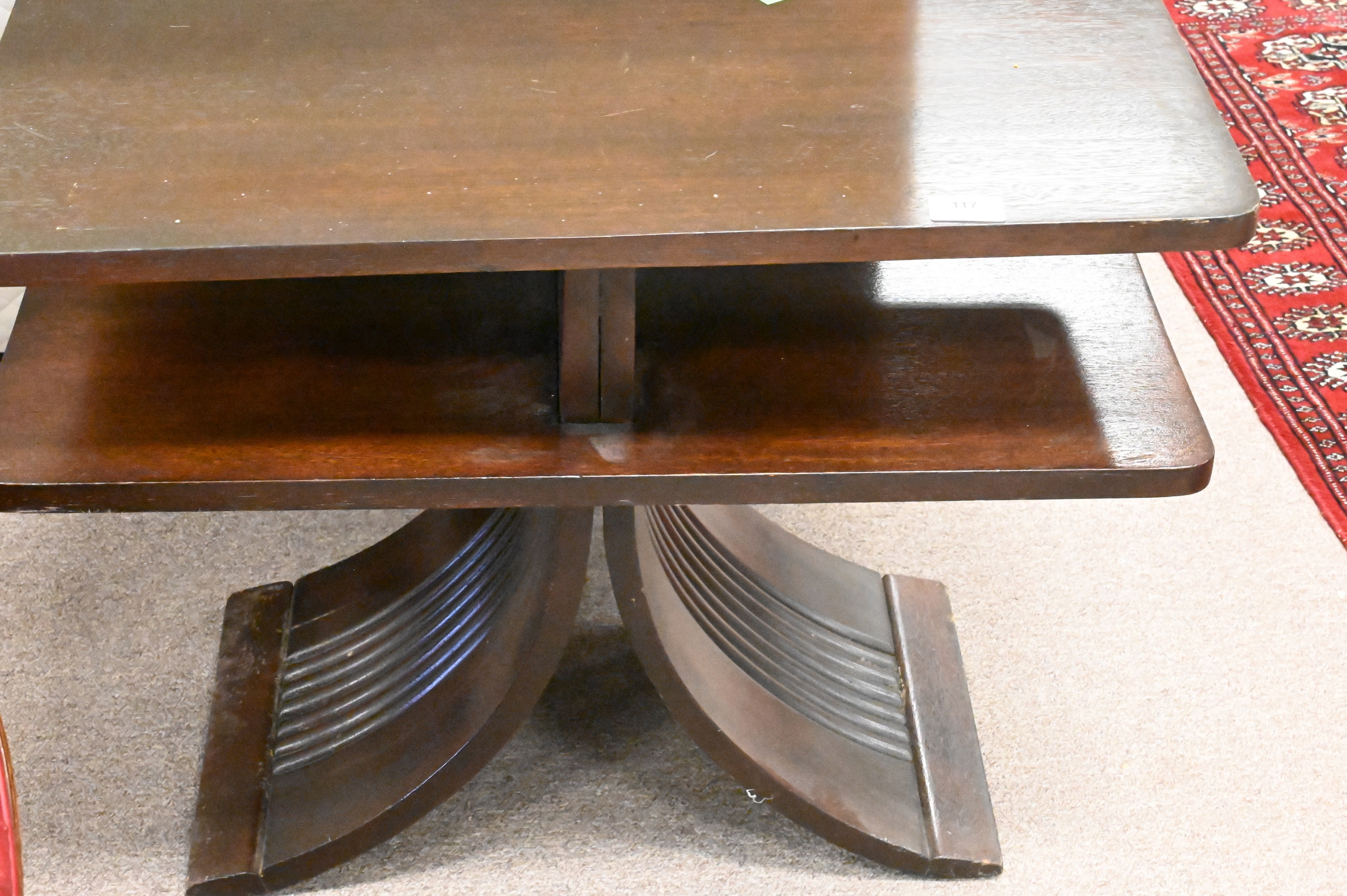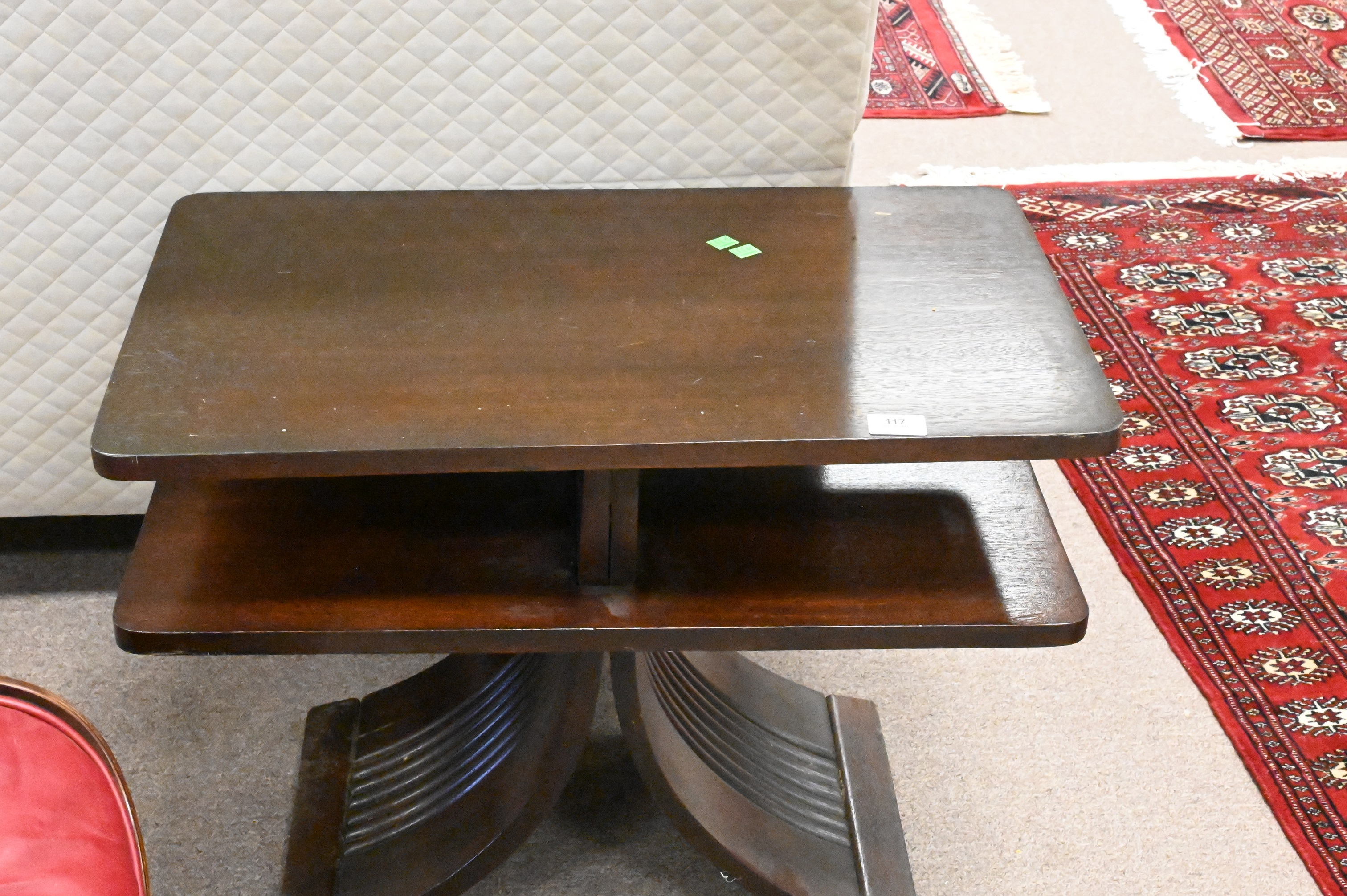 possibly Dunbar, mid 20th century, each having two double sided tiers set on ridged splayed supports