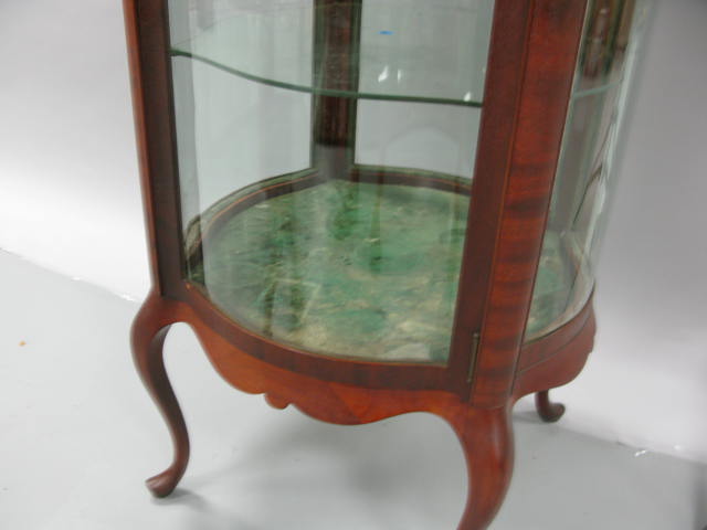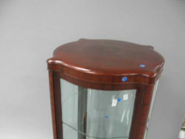 Serpentine glass curio cabinet with two glass shelves, four sides of glass