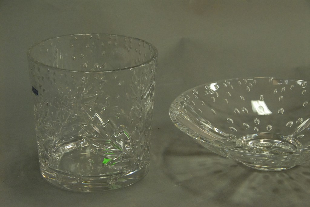 Lot 117: Three piece crystal lot Marquis pattern by Waterford, made in Germany: pair of ice buckets and a center bowl.