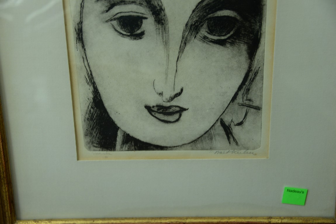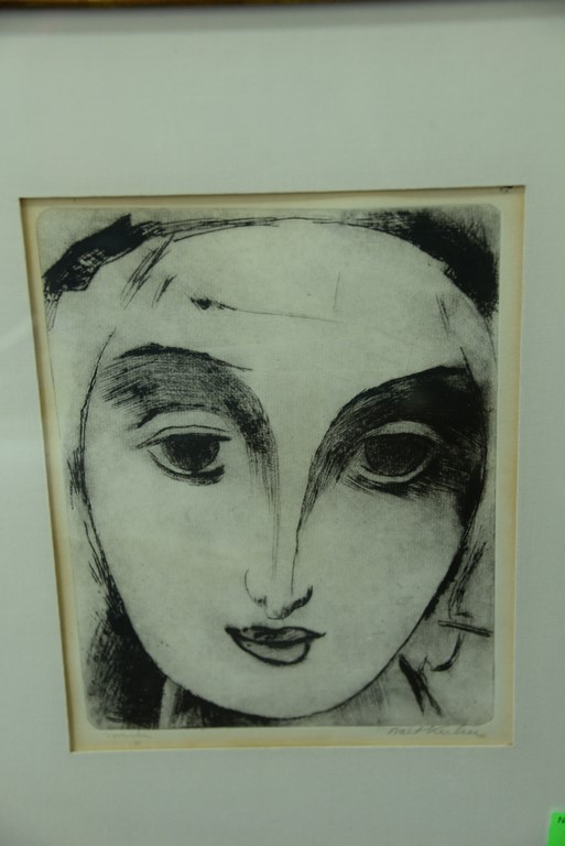Two etchings to include Jack Levine, drypoint etching, L’Enlevement des Sabines, 19/250, pencil signed J. Levine, and Walt Kuhn 1877-1949, etching, Mask. plate sizes: 3 3/4 x 2 3/4 and 8 1/2 x 6 1/2.