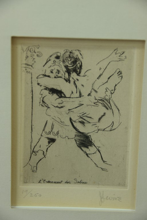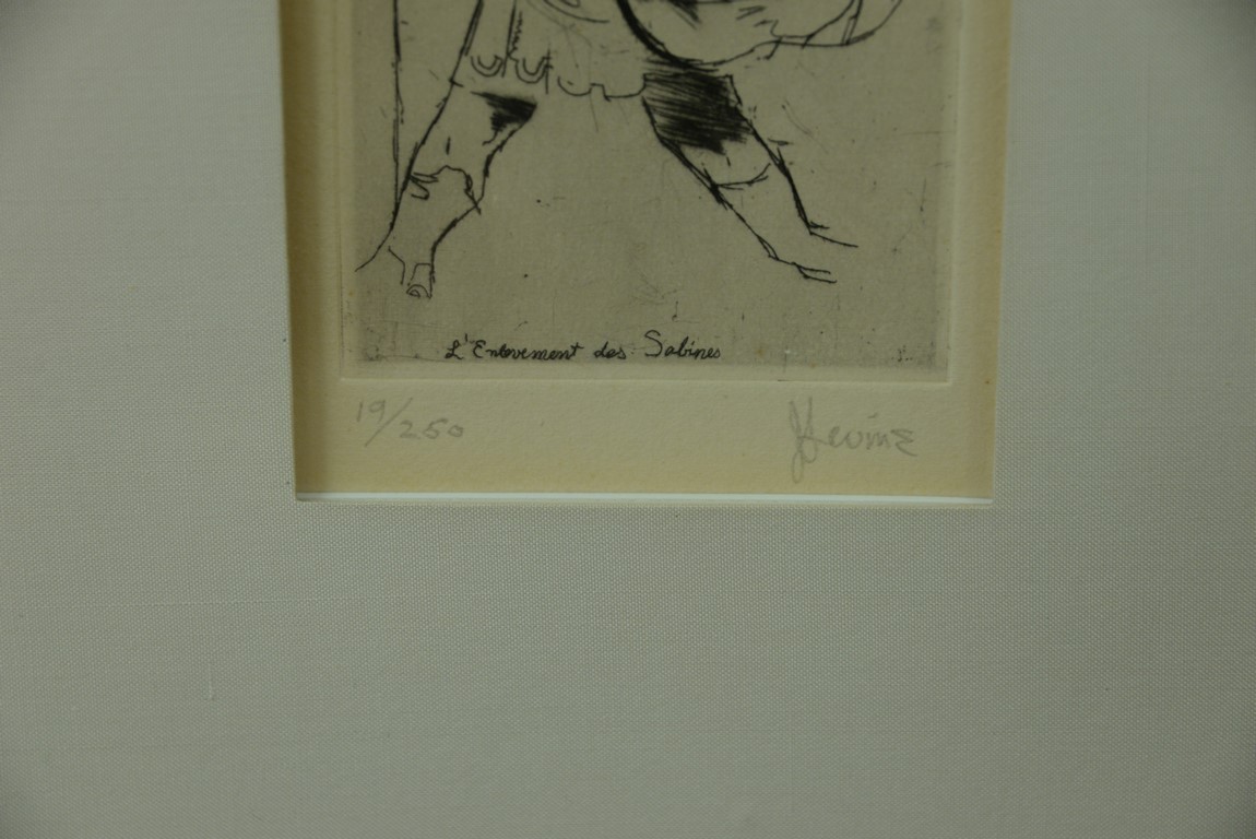 Lot 117: Two etchings to include Jack Levine, drypoint etching, L’Enlevement des Sabines, 19/250, pencil signed J. Levine, and Walt Kuhn 187…