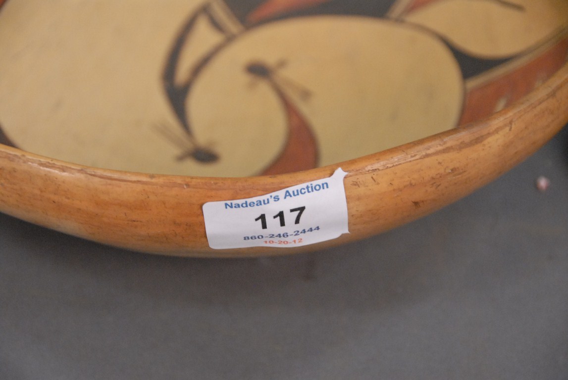 Lot 117: Two piece lot Acoma pottery bowl one crack and small plate. bowl: dia. 10in. ht. 3in. plate: dia. 4 3/4in. Being sold to benefit…