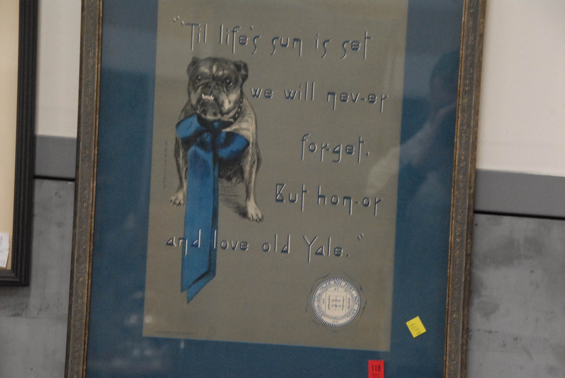 Lot 118: Abigail Kellogg Hazard Til’ life’s sun is set we will nev-er forget, but hon-or and love old Yale, 18 x 12.