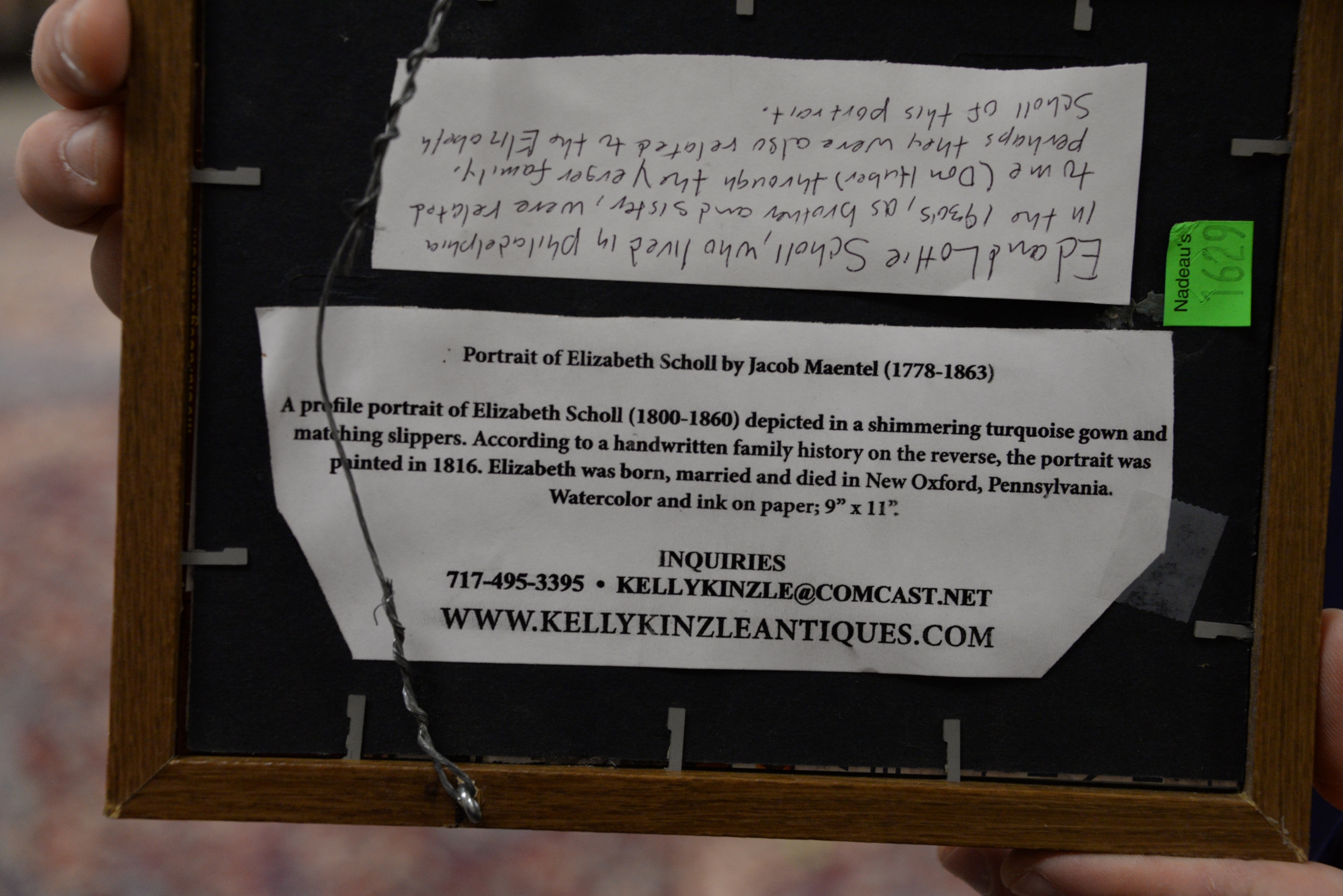 According to a handwritten family history on verso, the portrait was painted 1816…..” – Kelly Kinzle Antiques