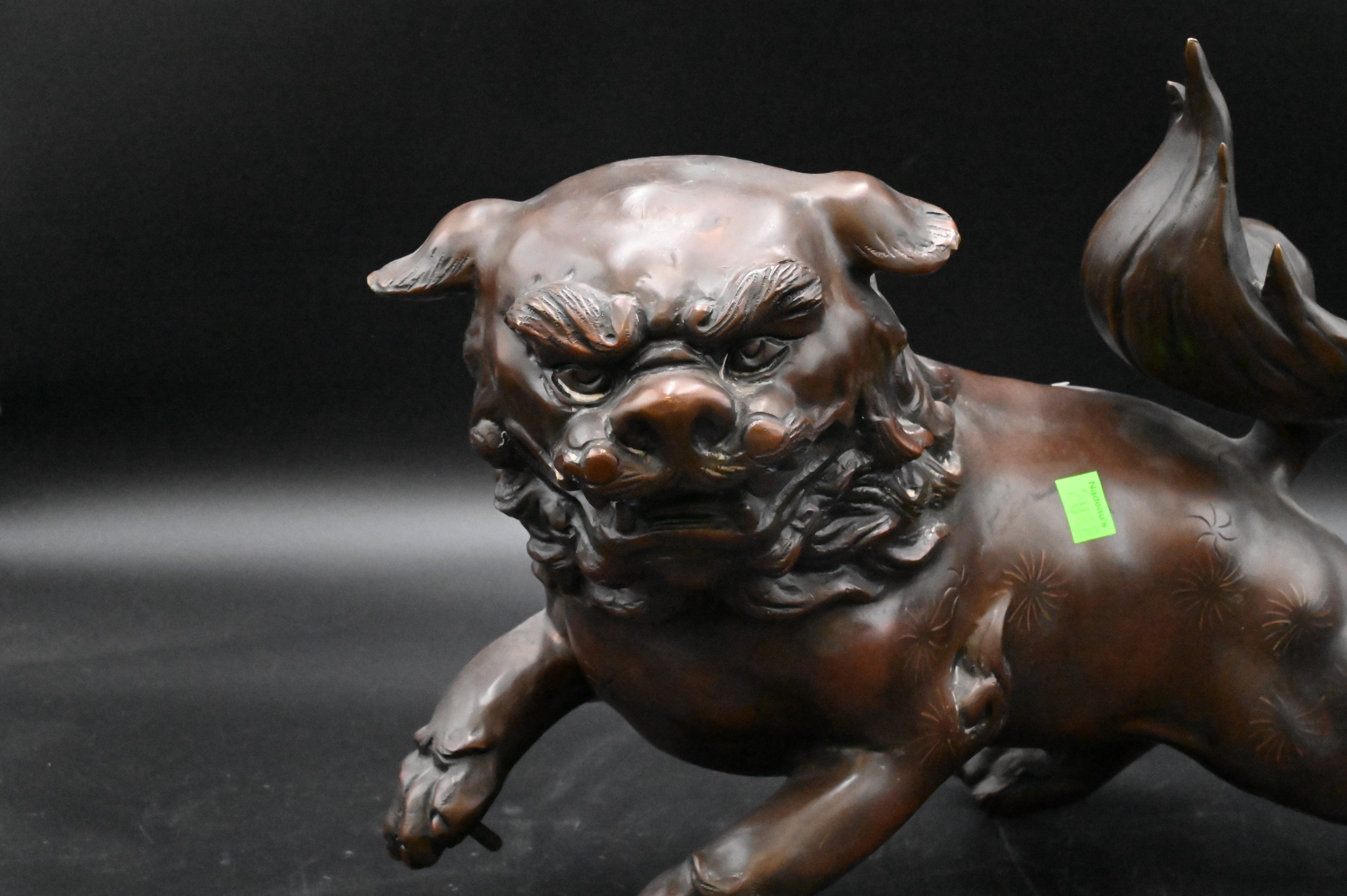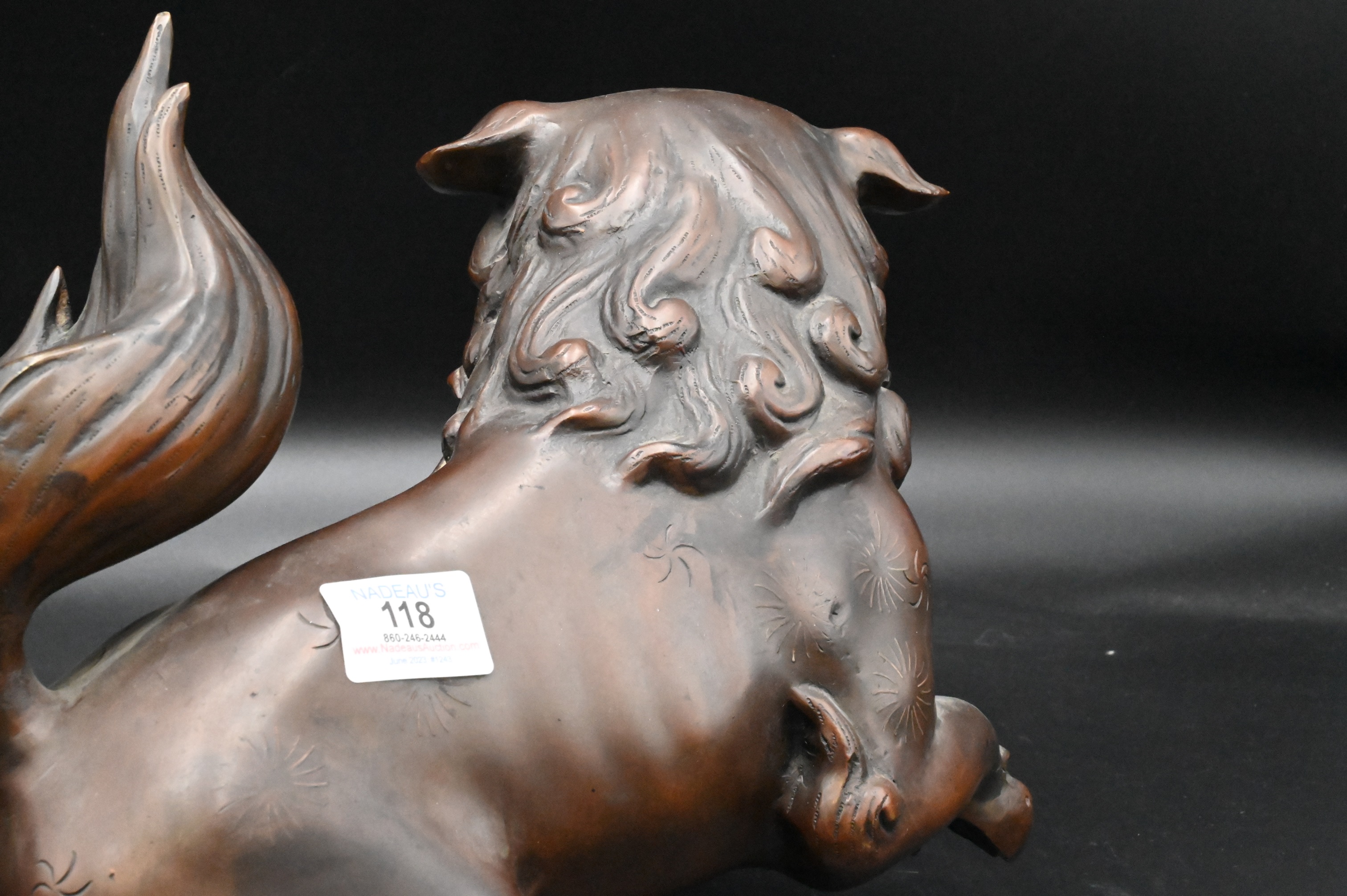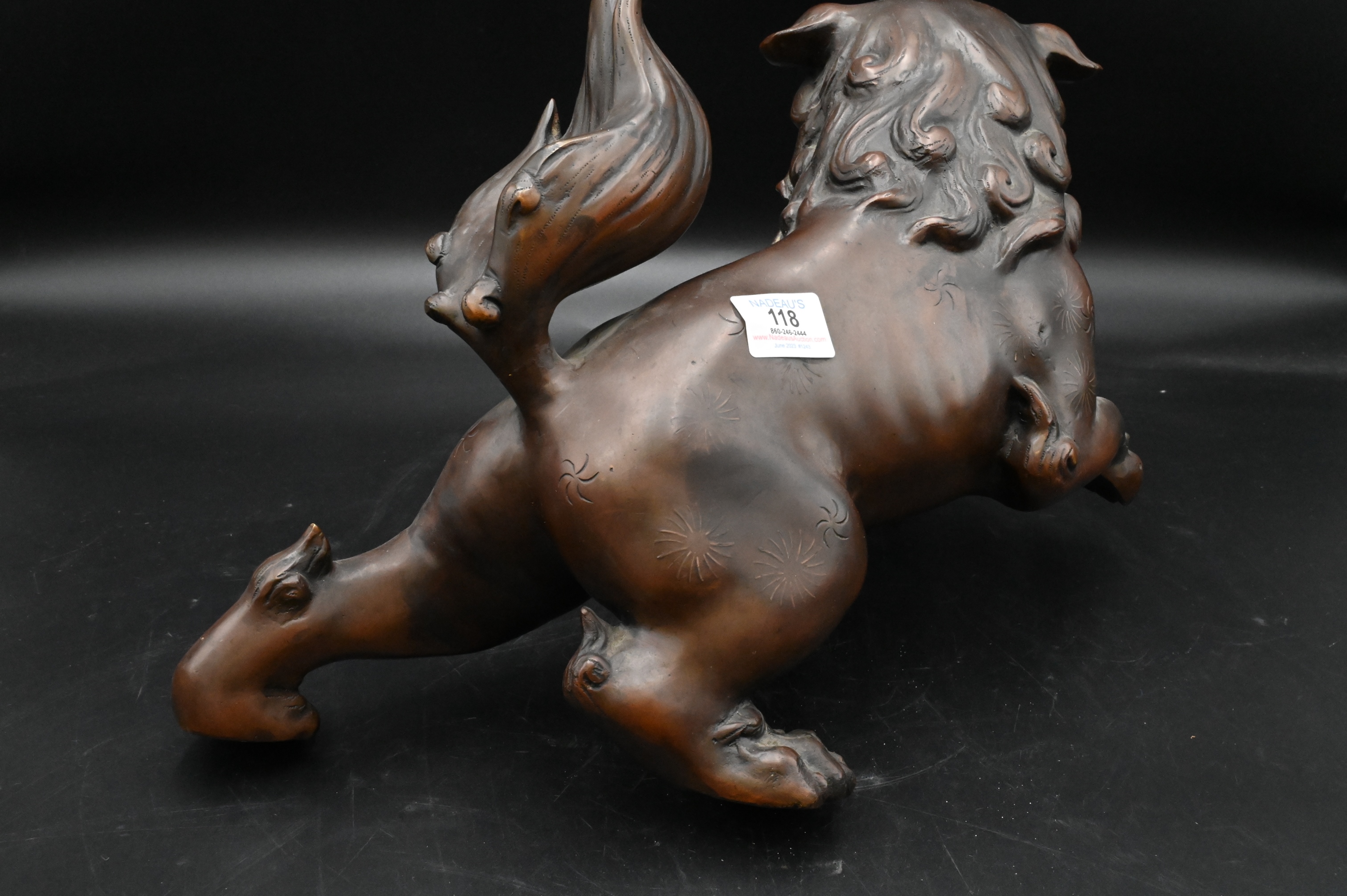 Chinese Bronze Foo Dog, height 11 inches, length 20 inches, Provenance: Julius H Jacobson II a Fifth Avenue Estate.