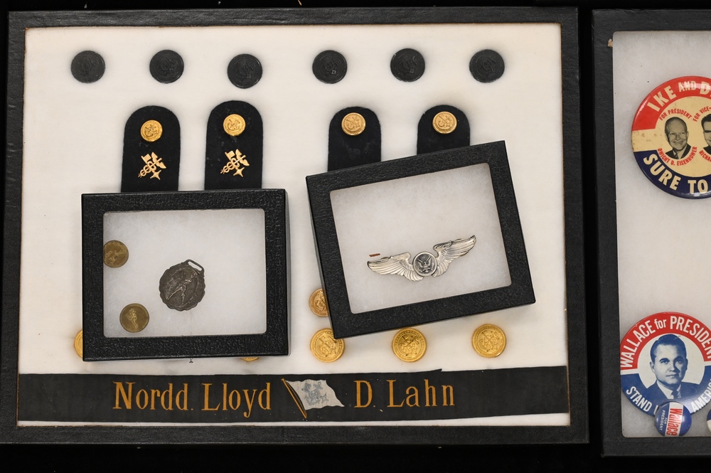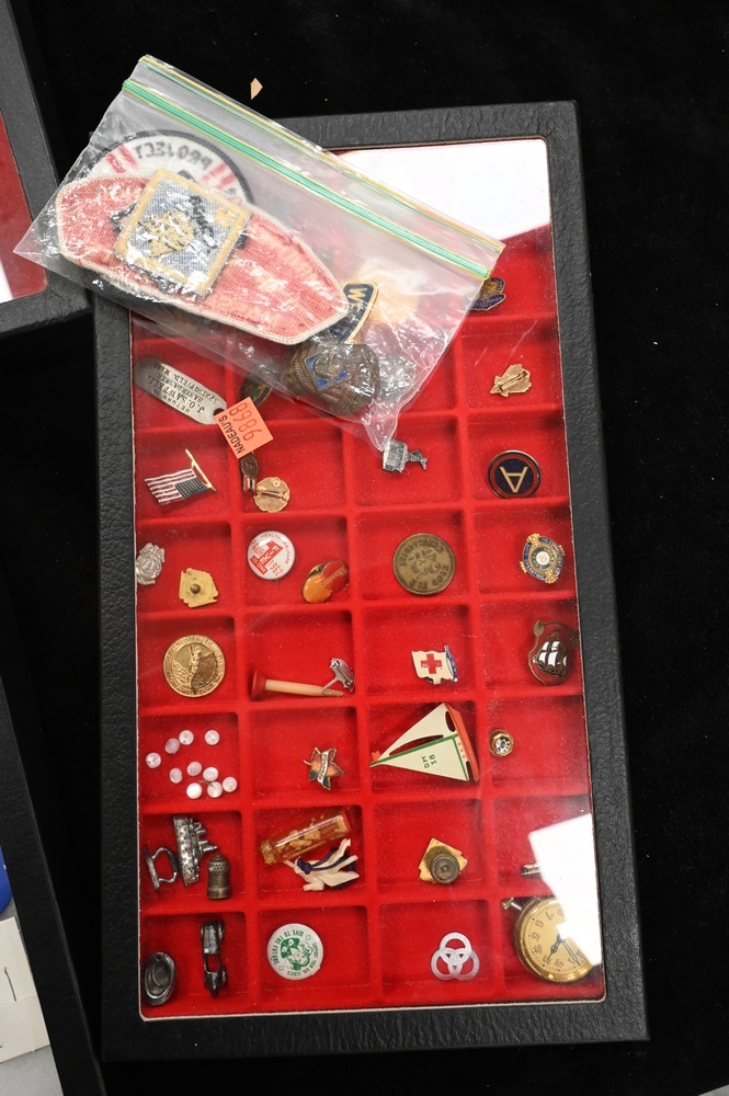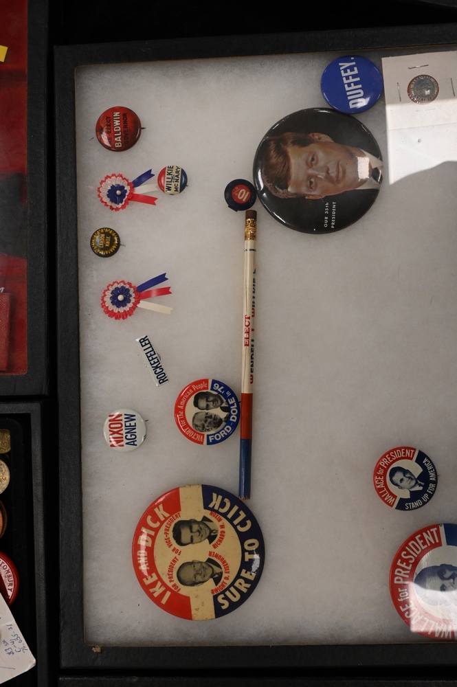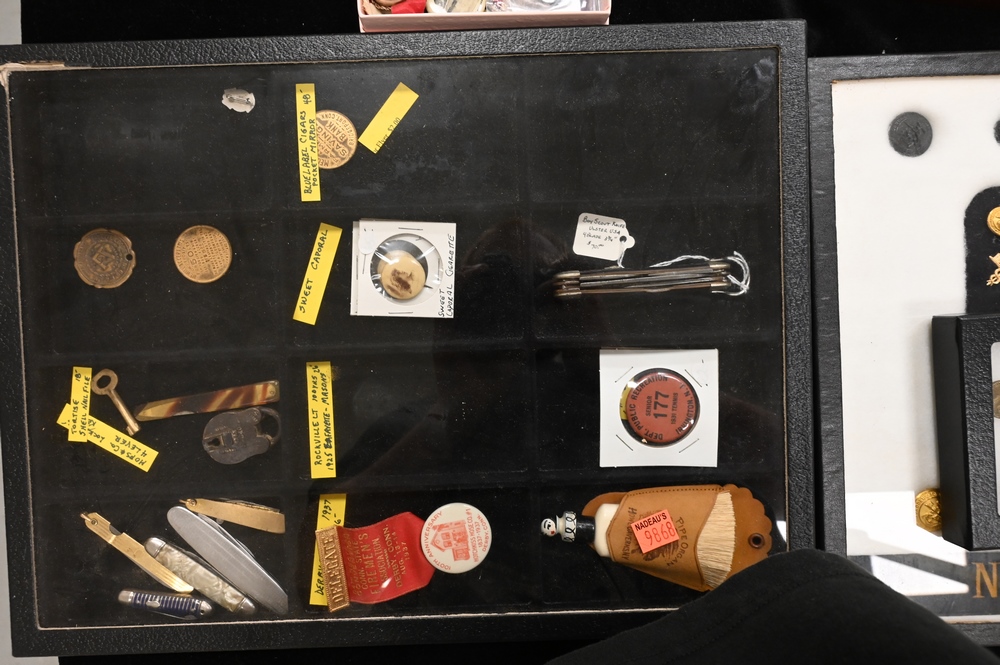 Lot 118: Lot of Pins, Medals and Pocket Knives, to include various topics such as political and Hartford Bridge.