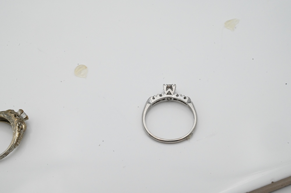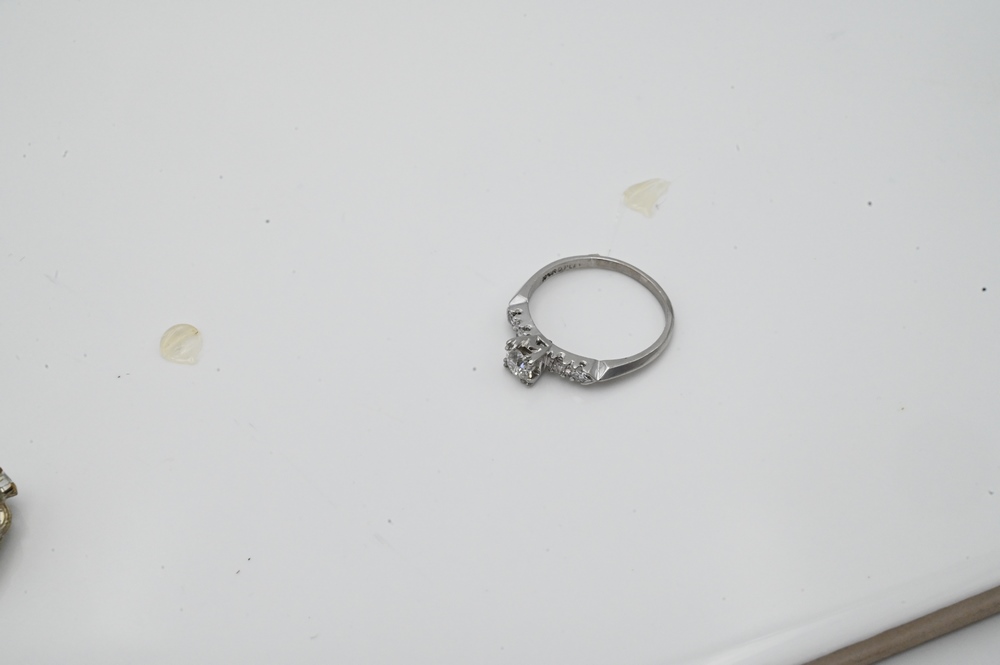 Lot 118: Platinum and Diamond Engagement Ring, set with center diamond, approximately .50 carats, flanked by two diamonds on either side, siz…