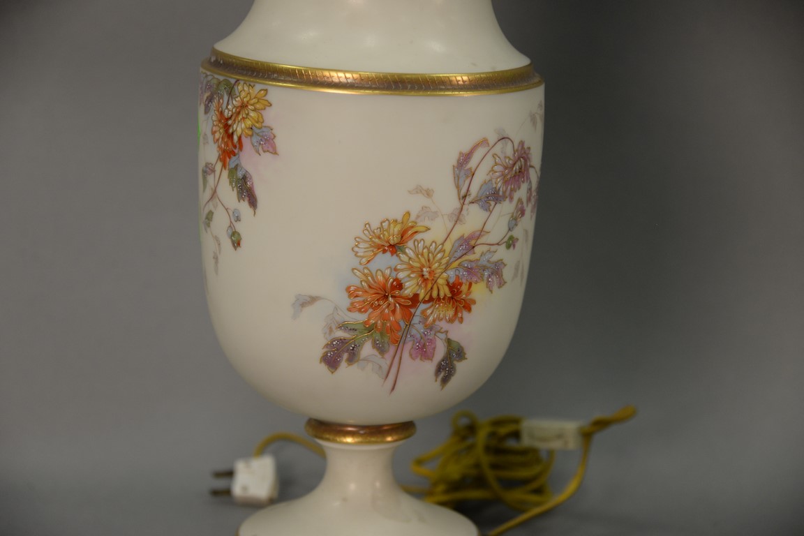 Porcelain banquet lamp in the manner of Royal Worcester, electrified. total ht. 36in.