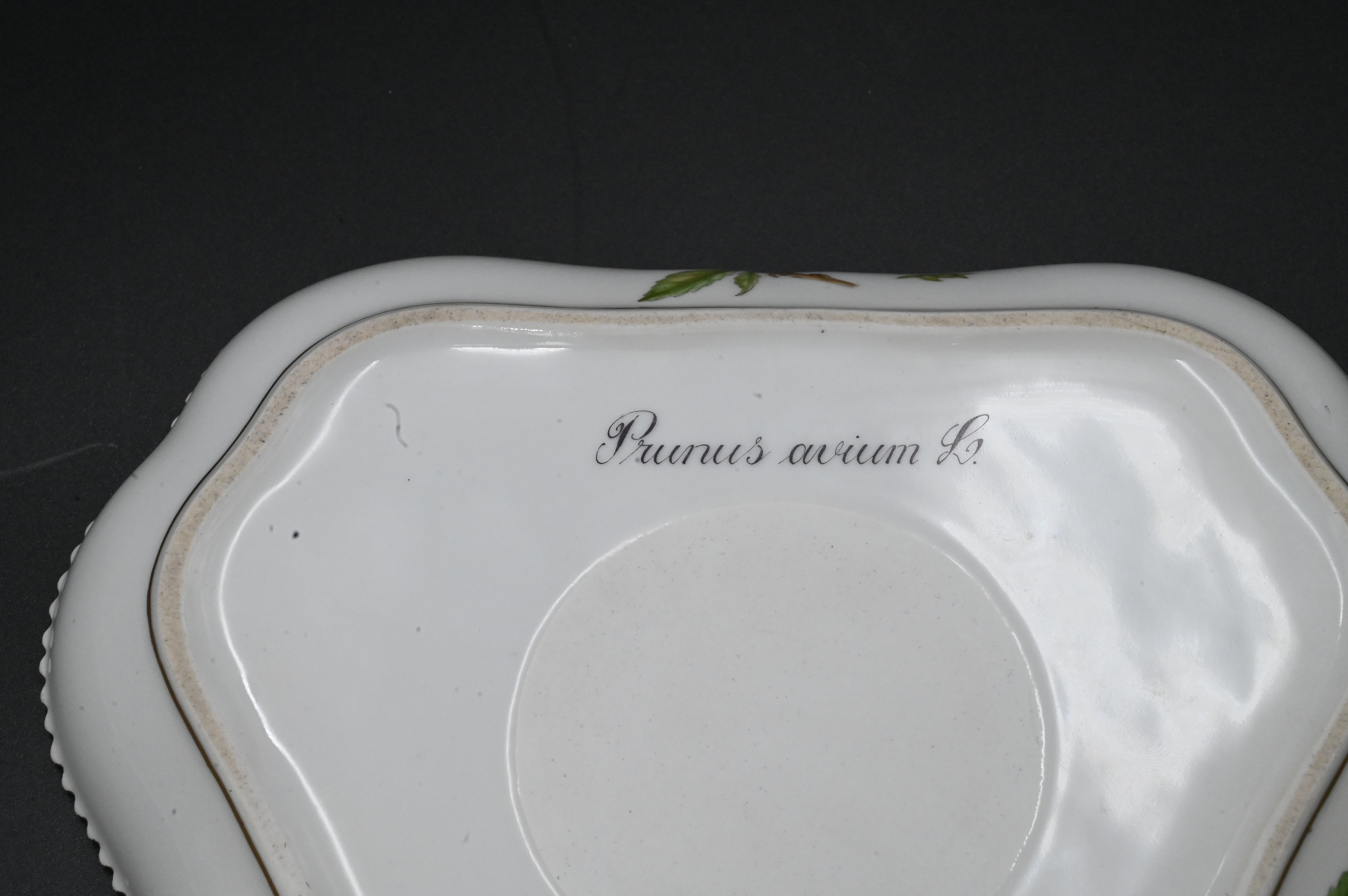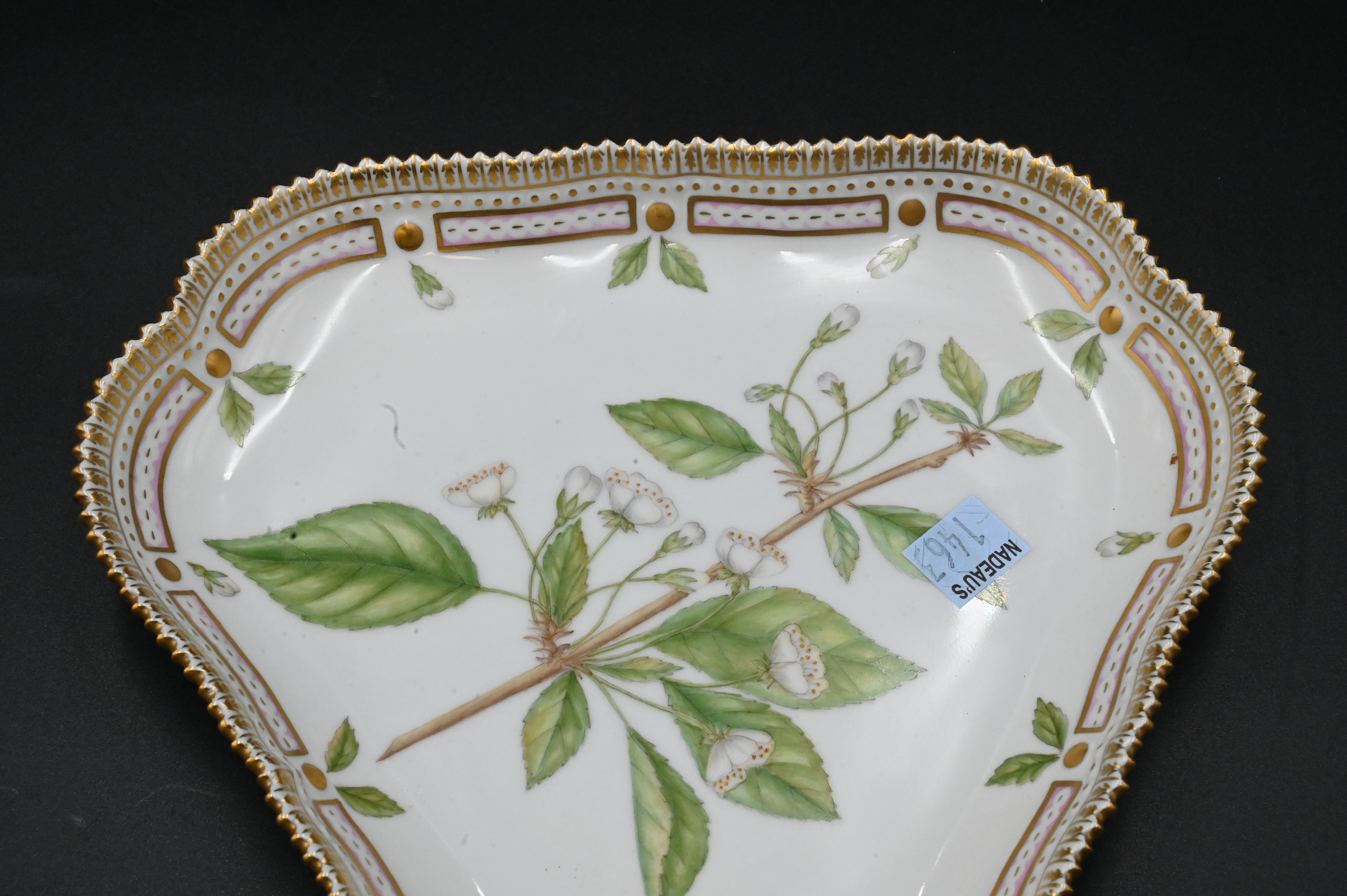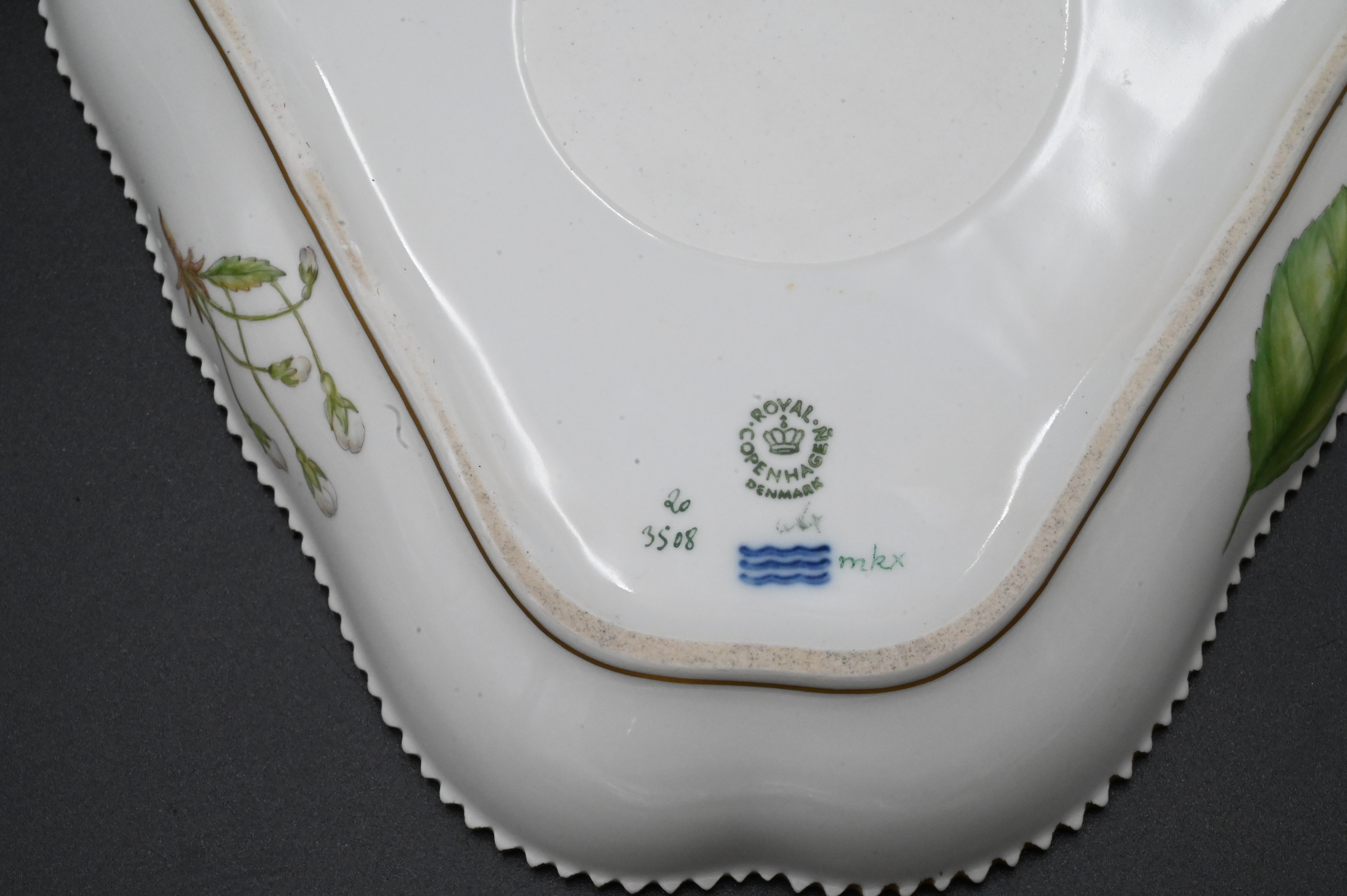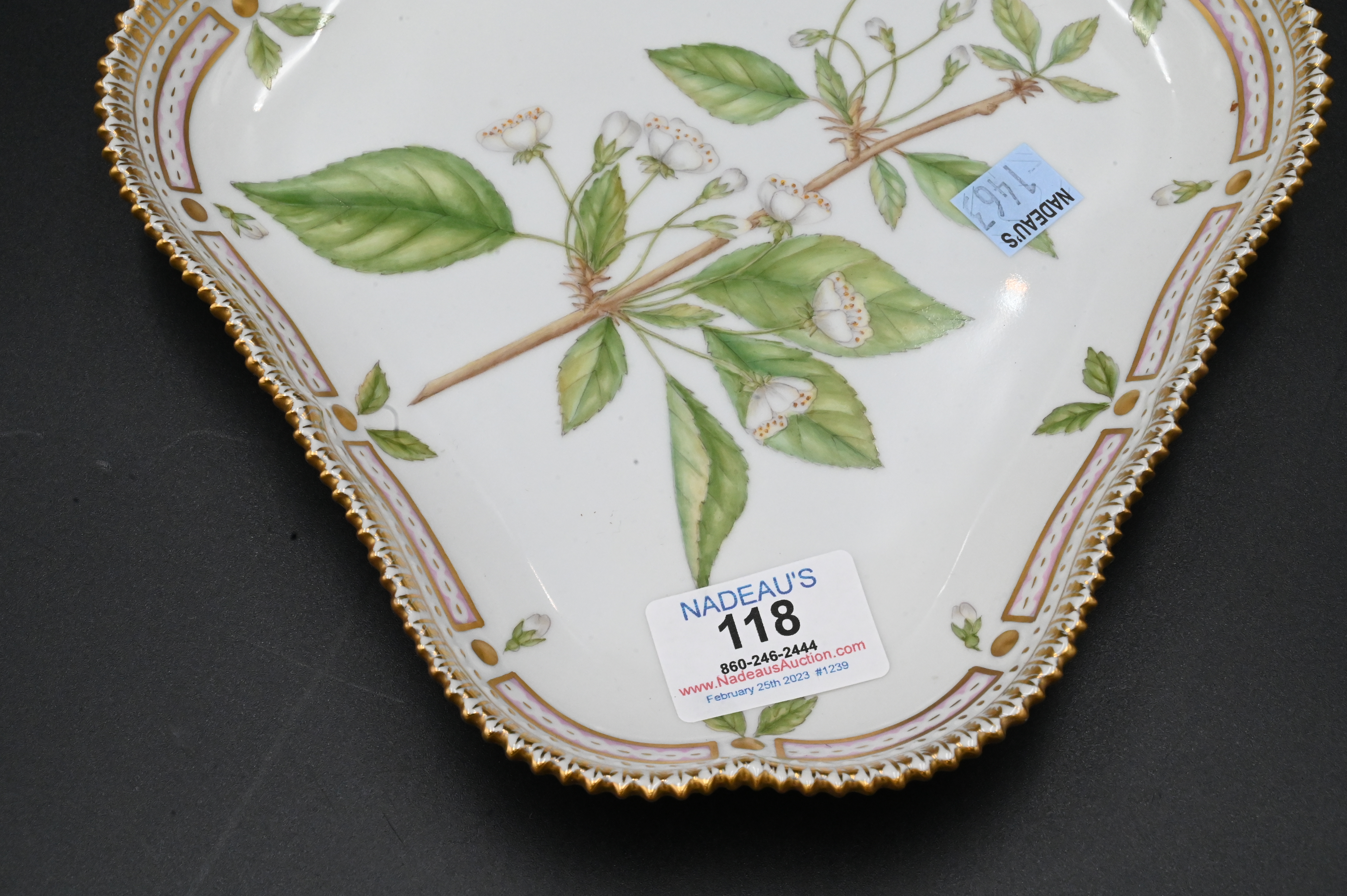 Royal Copenhagen Flora Danica Triangular Tray, marked Prunus avium dish, 8 1/4″ x 9″.