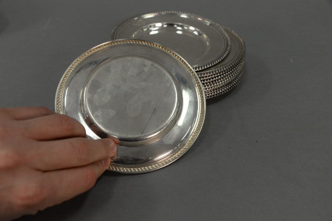 Set of twelve sterling silver bread plates, 34.6 t oz.