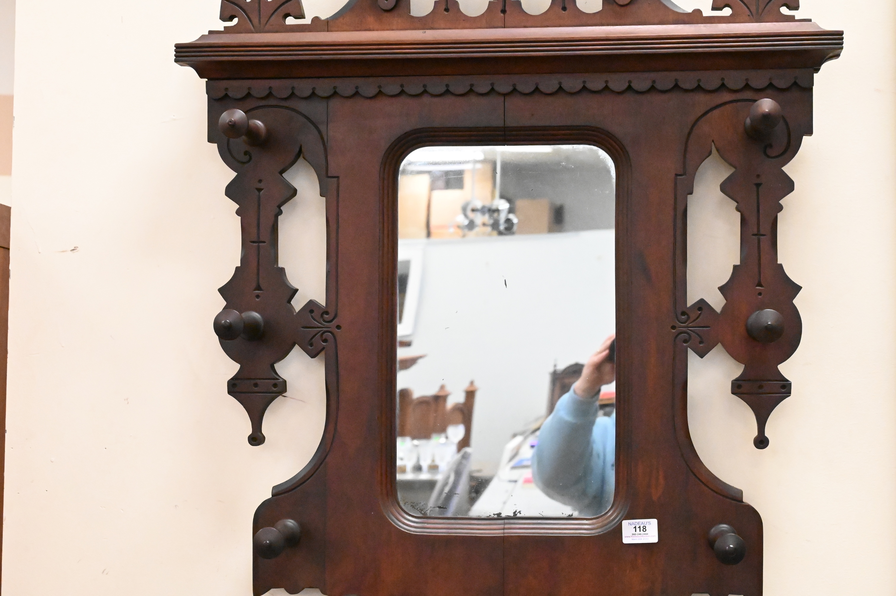 Lot 118: Walnut Victorian Hanging Mirrored Hat Rack