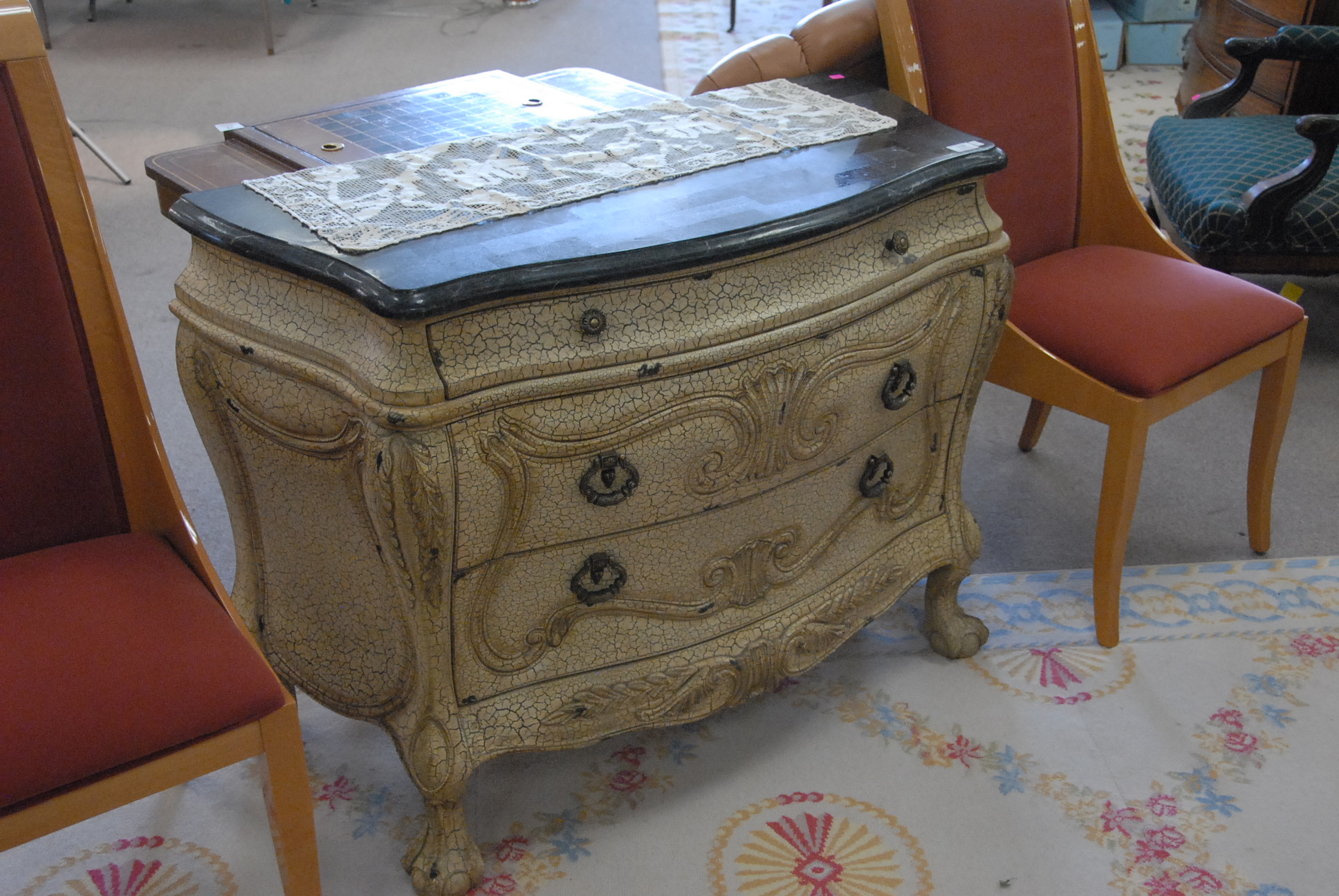 Contemporary commode with granite veneer, ht. 34 in. wd. 44 in.