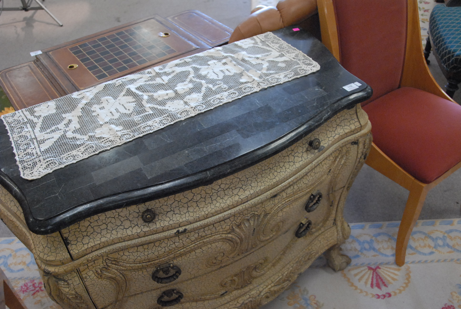 Lot 119: Contemporary commode with granite veneer, ht. 34 in. wd. 44 in.