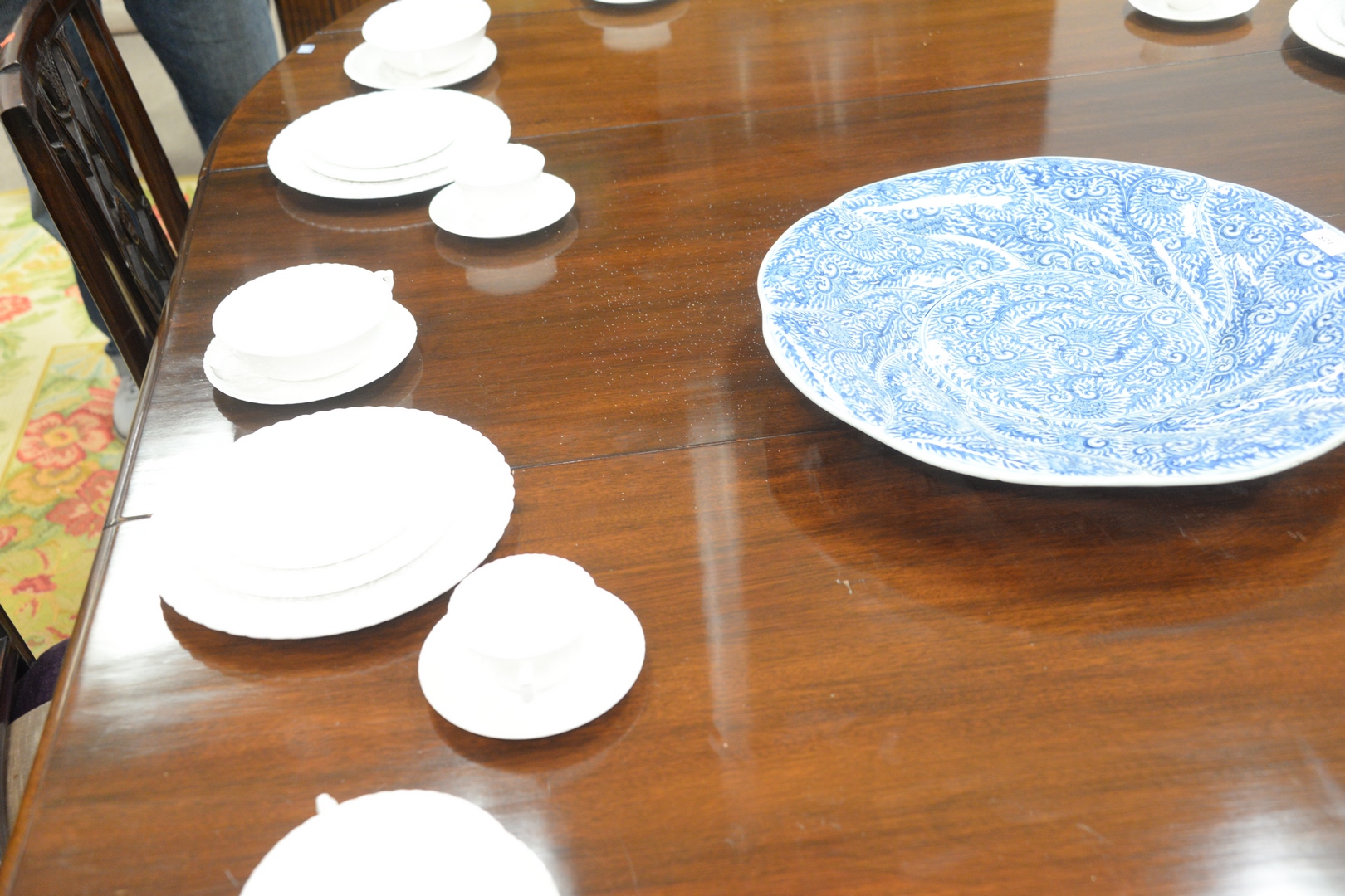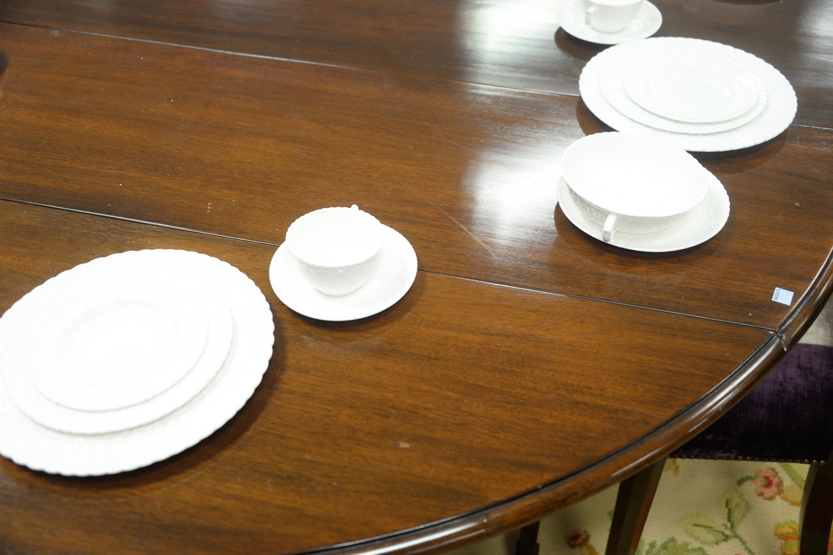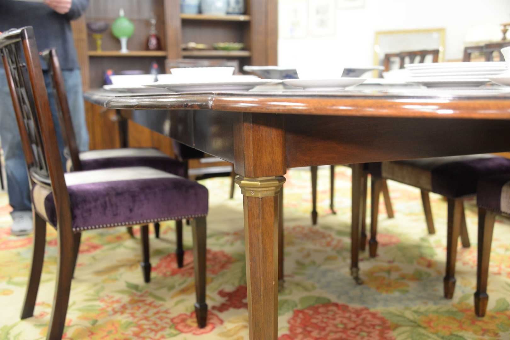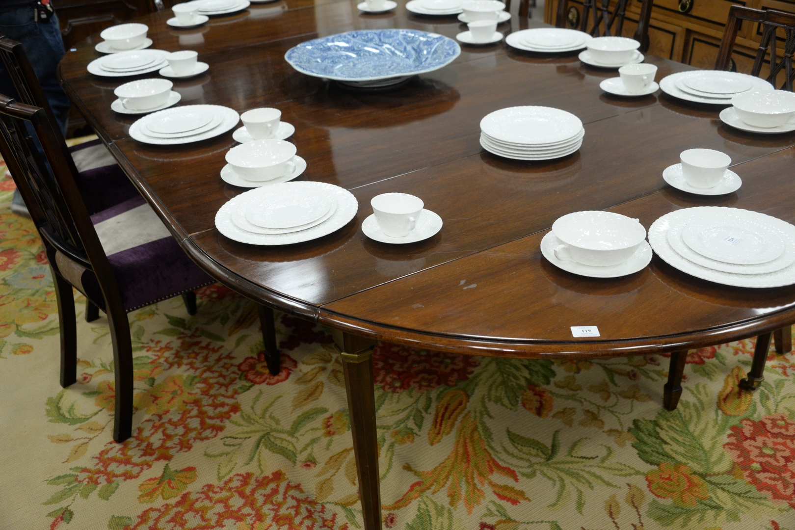 Lot 119: Continental Style Mahogany Extending Drop Leaf Table, in manner of Jansen, with two extra leaves, 24 inches each, height 29 inches, …