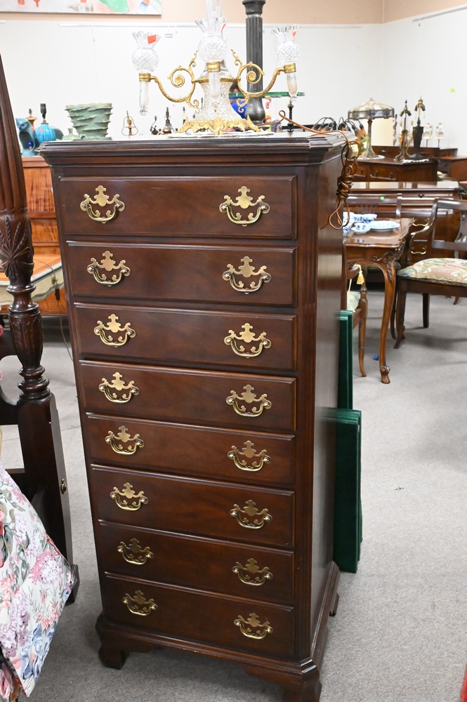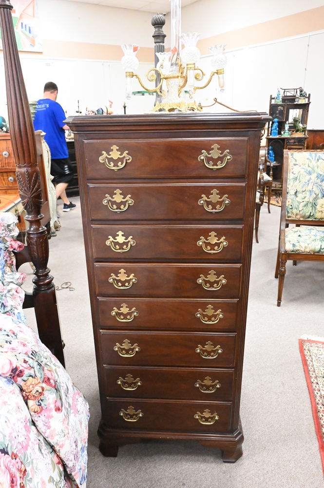 Drexel Cherry Lingerie Chest, imperfections to top, height 53 inches, top 17″ x 24″.