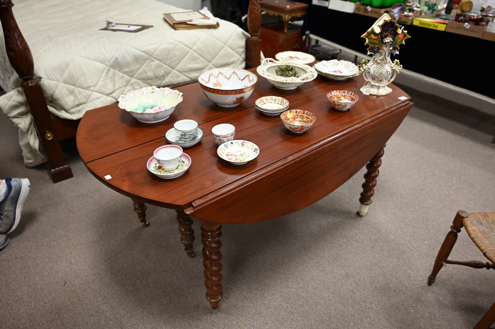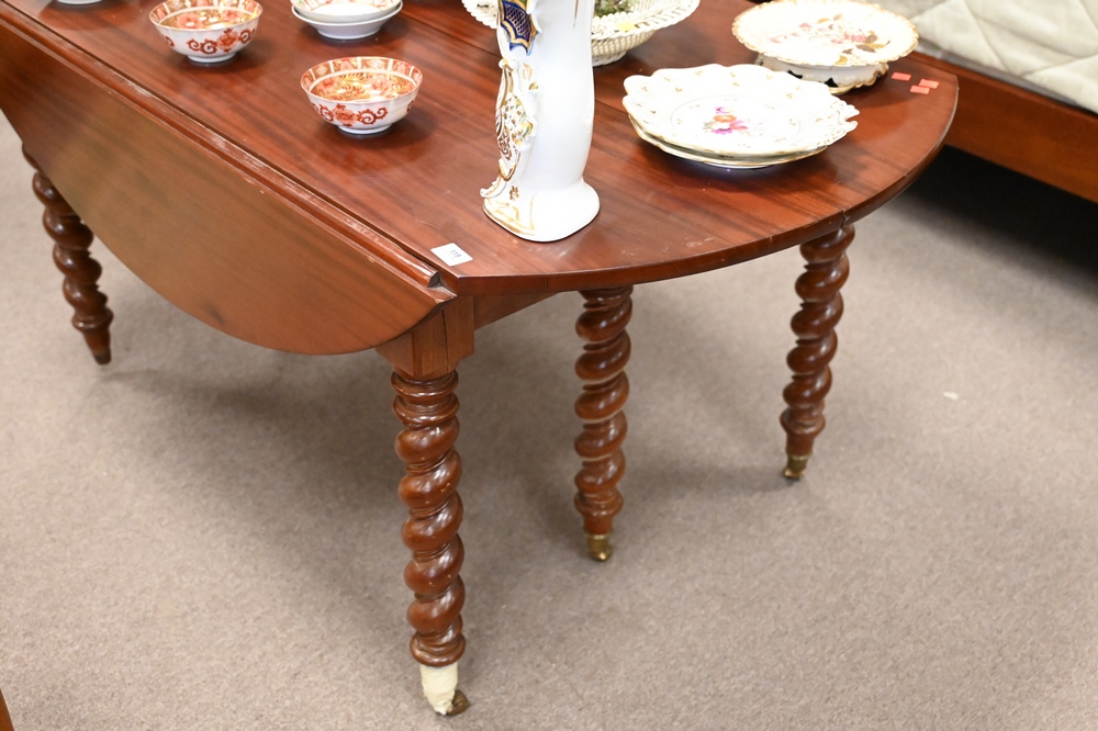 Lot 119: Mahogany Drop Leaf Table, on spiral turned legs, height 28 inches.