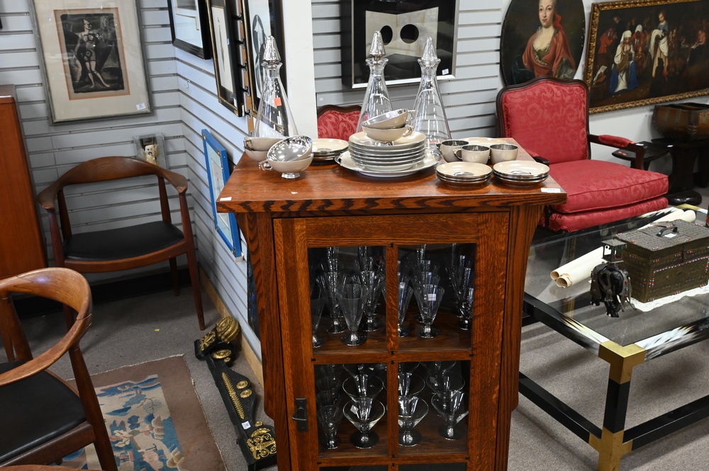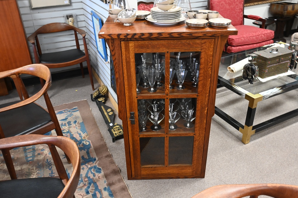 Lot 119: Mission Oak Style Bookcase, with one door, height 44 inches, top 19.5″ x 28.5″.