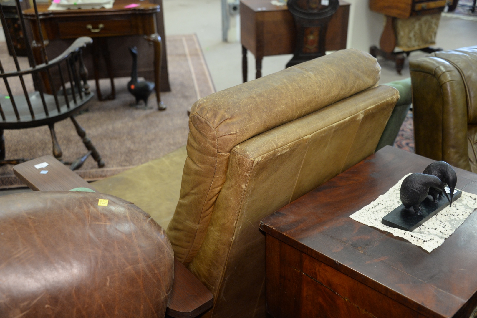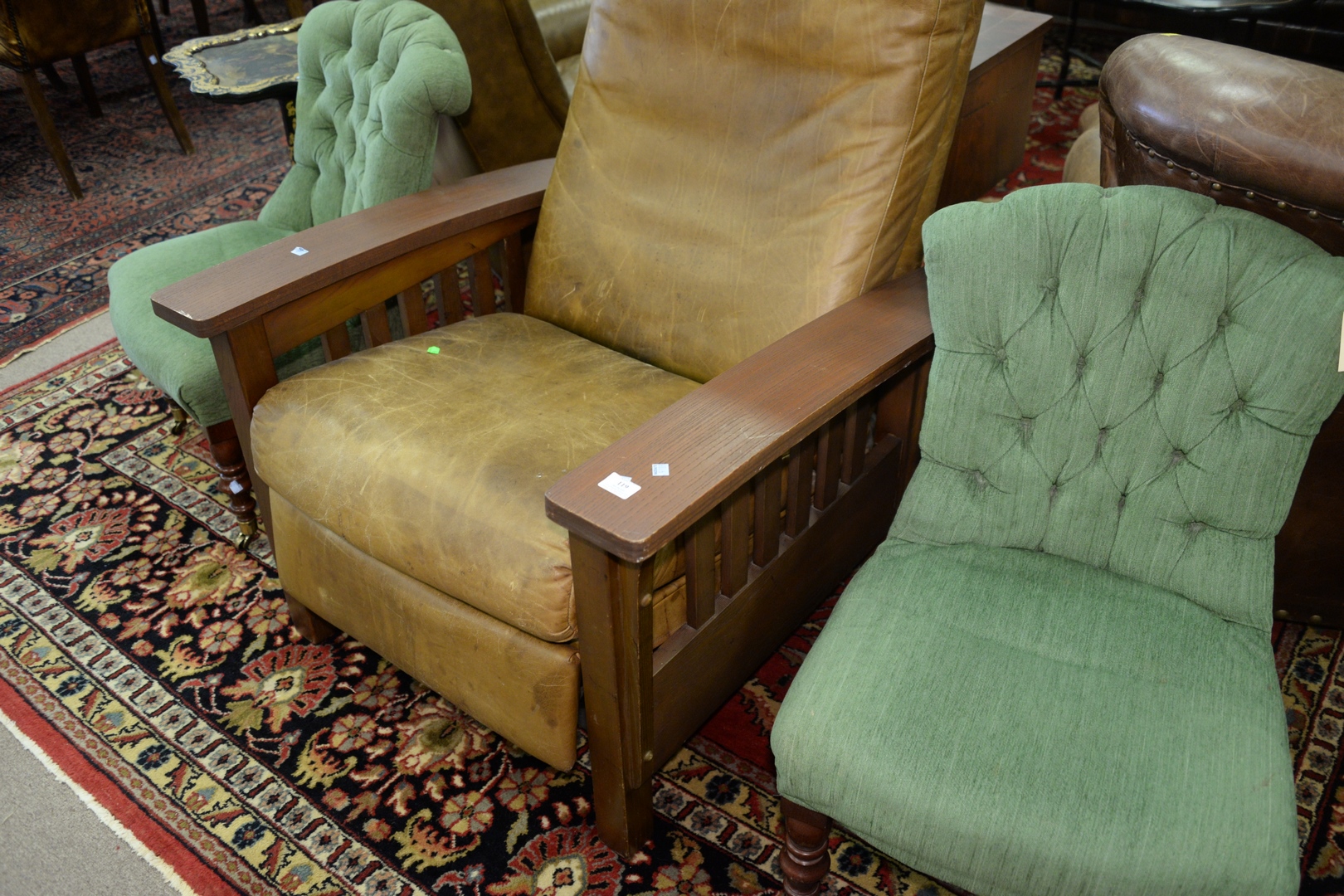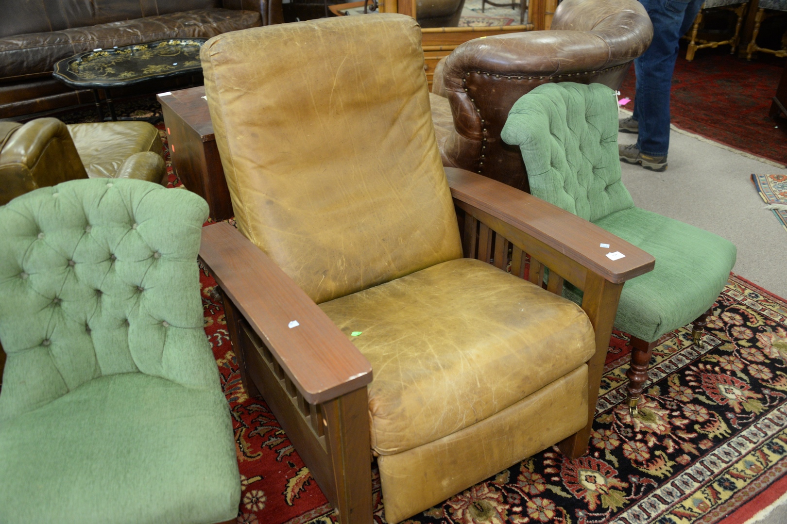 Lot 119: Mission Style Oak Morris Chair with leather upholstery late 20th Century height 40 inches, width 34 inches Provenance: Thirty-five …