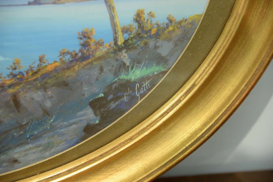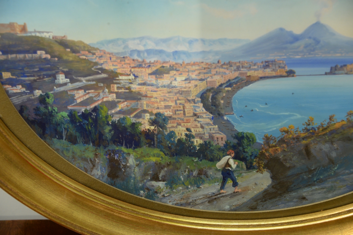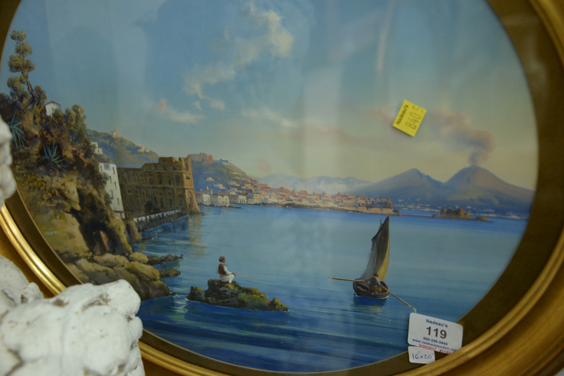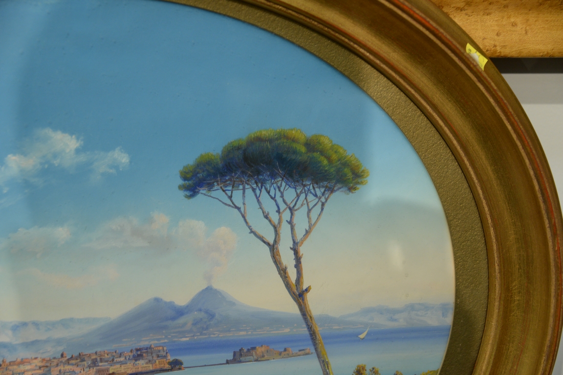 Pair of oval Italian Gouache on board Mount Vesuvius, 16 x 20.