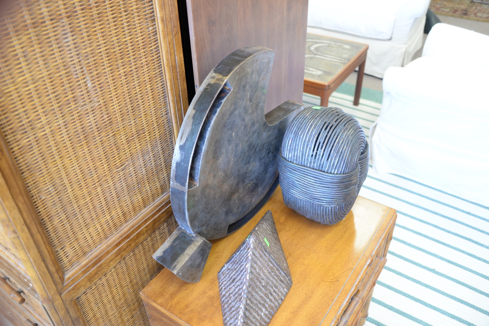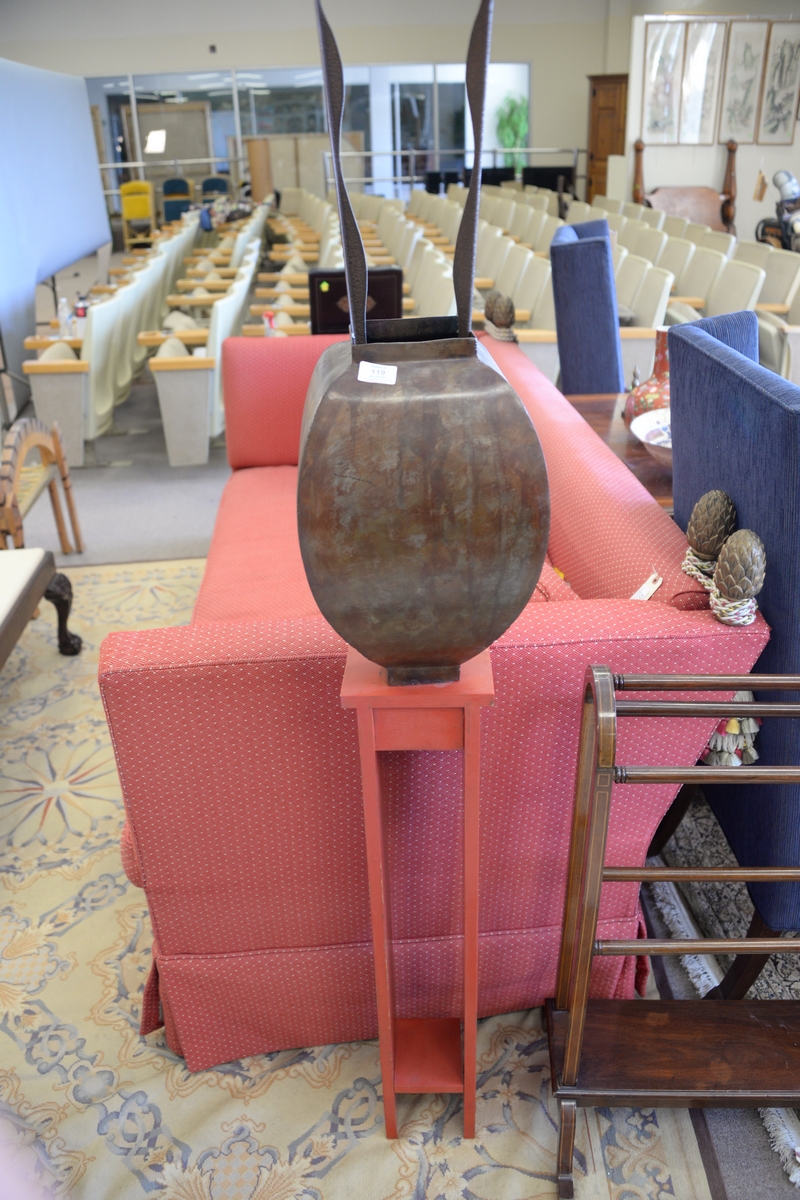 Peter Charles b. 1943 red table 1984, steel and lacquer over wood, photo’d in Awards in the Visual Arts 4 catalog. ht. 74in., top: 16 1/2 x 10 1/2