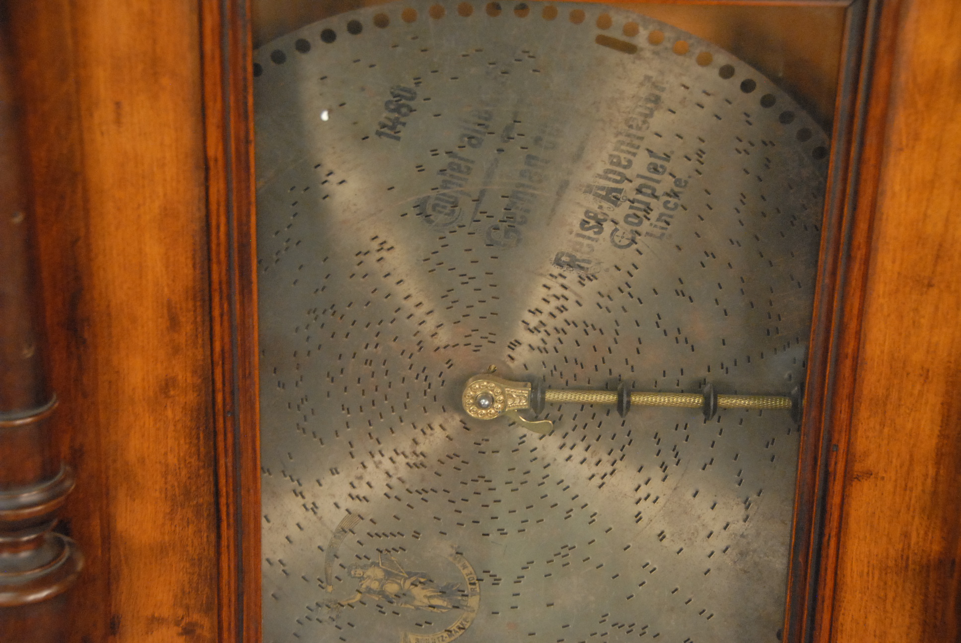 Lot 119: Polyphon upright disc music box with thirty-six 16 discs. cabinet: ht. 32in. wd. 25in. dp. 15in. discs: dia. 15 1/2in.