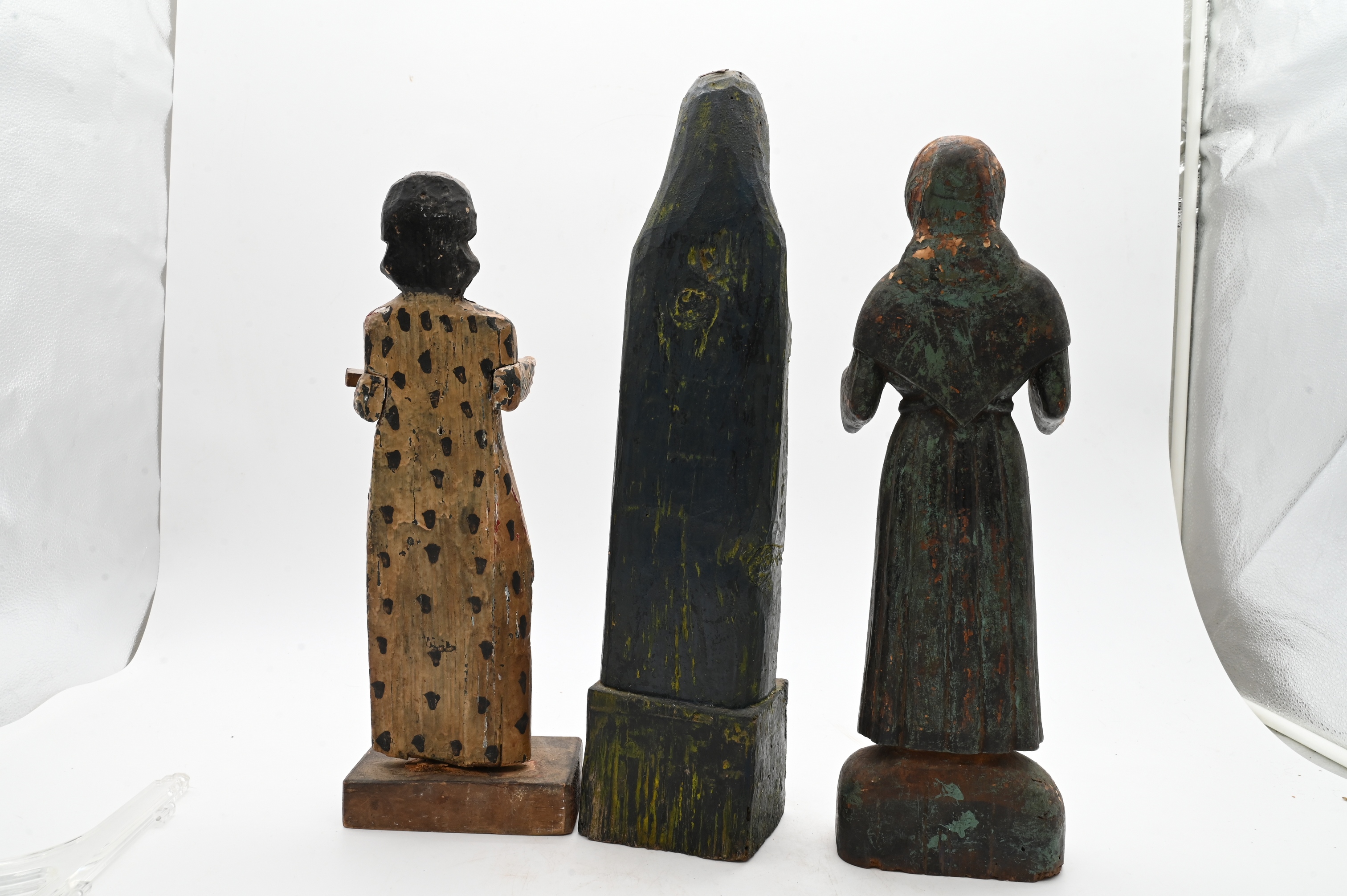 Three Painted Carved Religious Figures