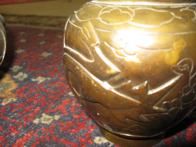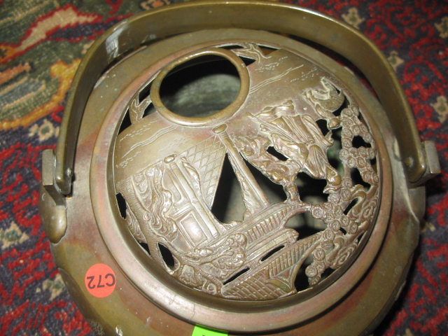 Two bronze Oriental pieces, incense pot and vase