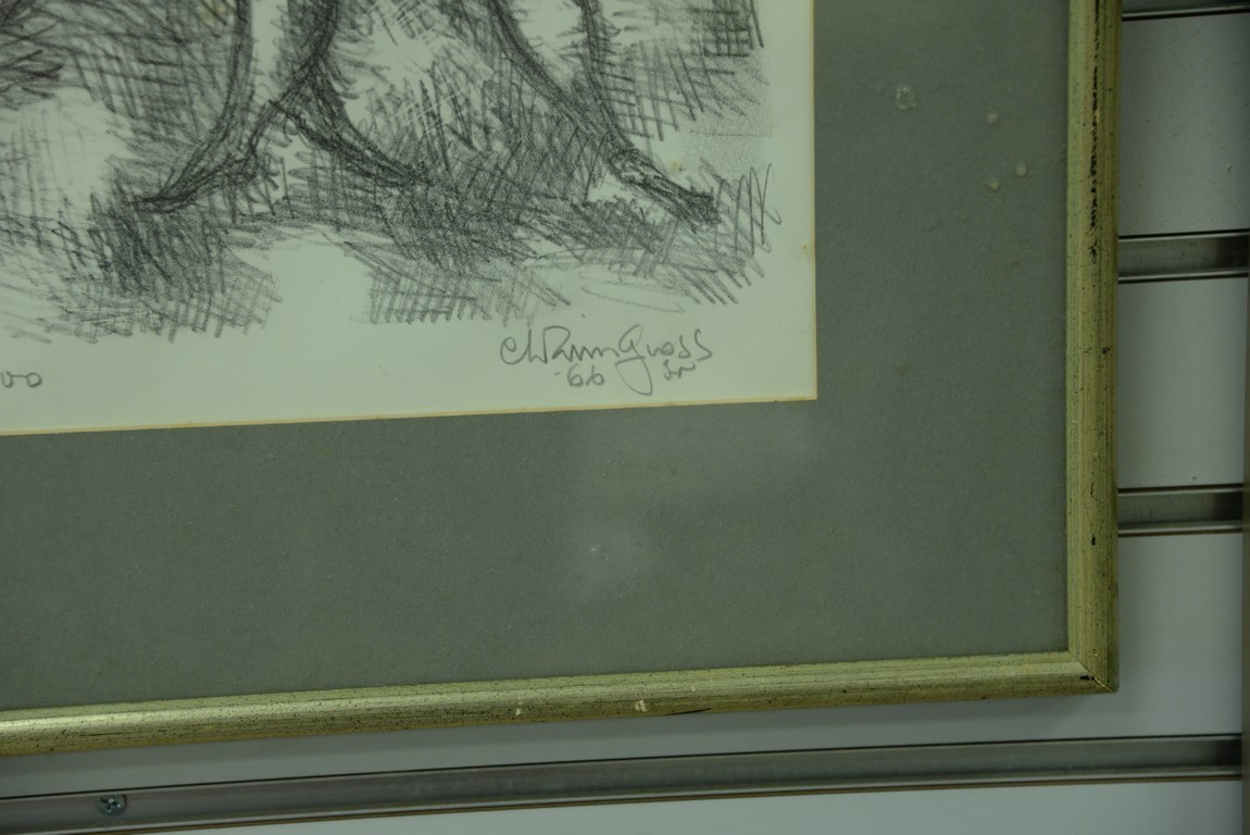 Two Chaim Gross 1904-1994 including an ink drawing of birds signed lower right Chaim Gross 69 and a lithograph pencil signed and numbered 96/200 Chaim Gross 66′. 7 1/4 x 9 1/4 and 15 1/2 x 11.