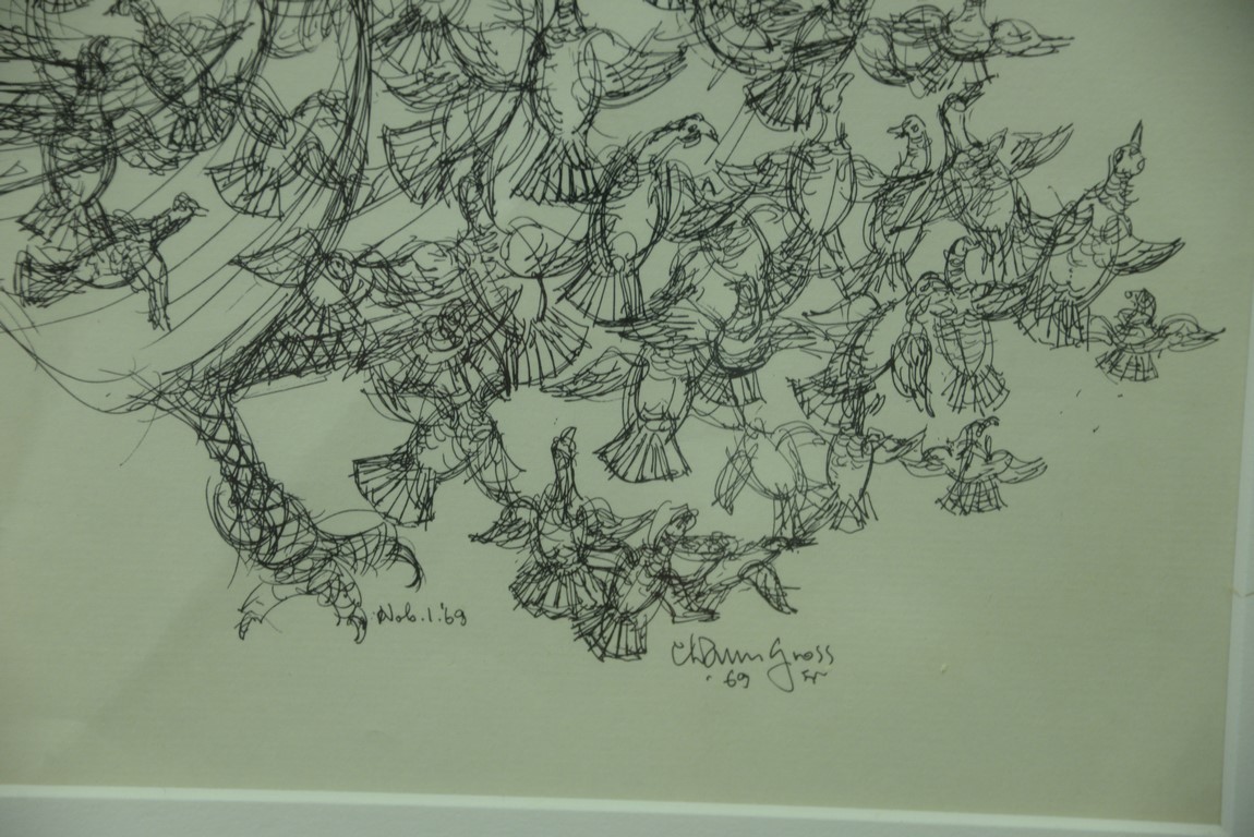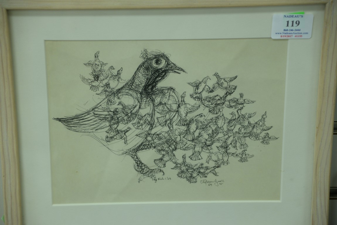 Lot 119: Two Chaim Gross 1904-1994 including an ink drawing of birds signed lower right Chaim Gross 69 and a lithograph pencil signed and n…