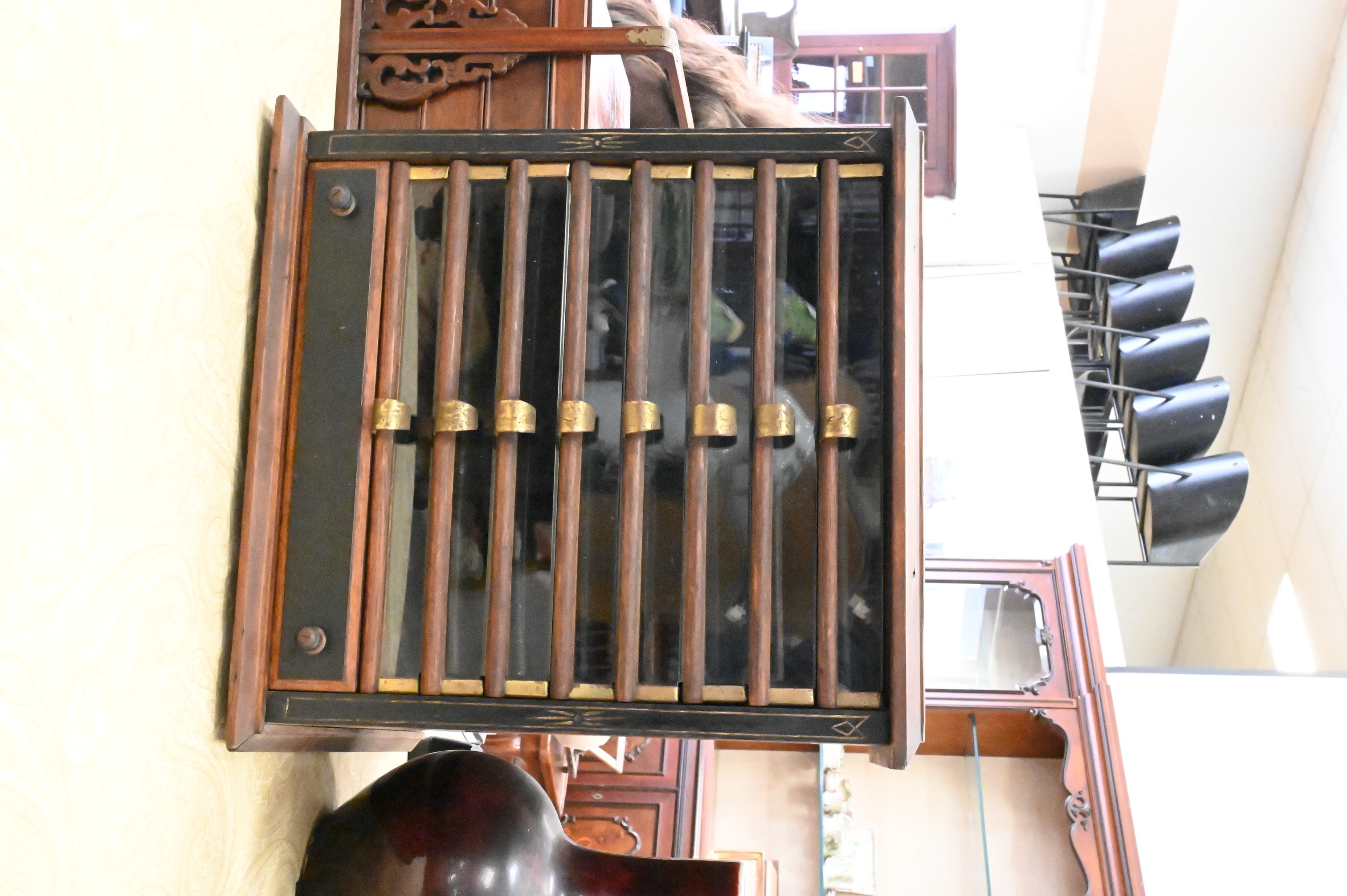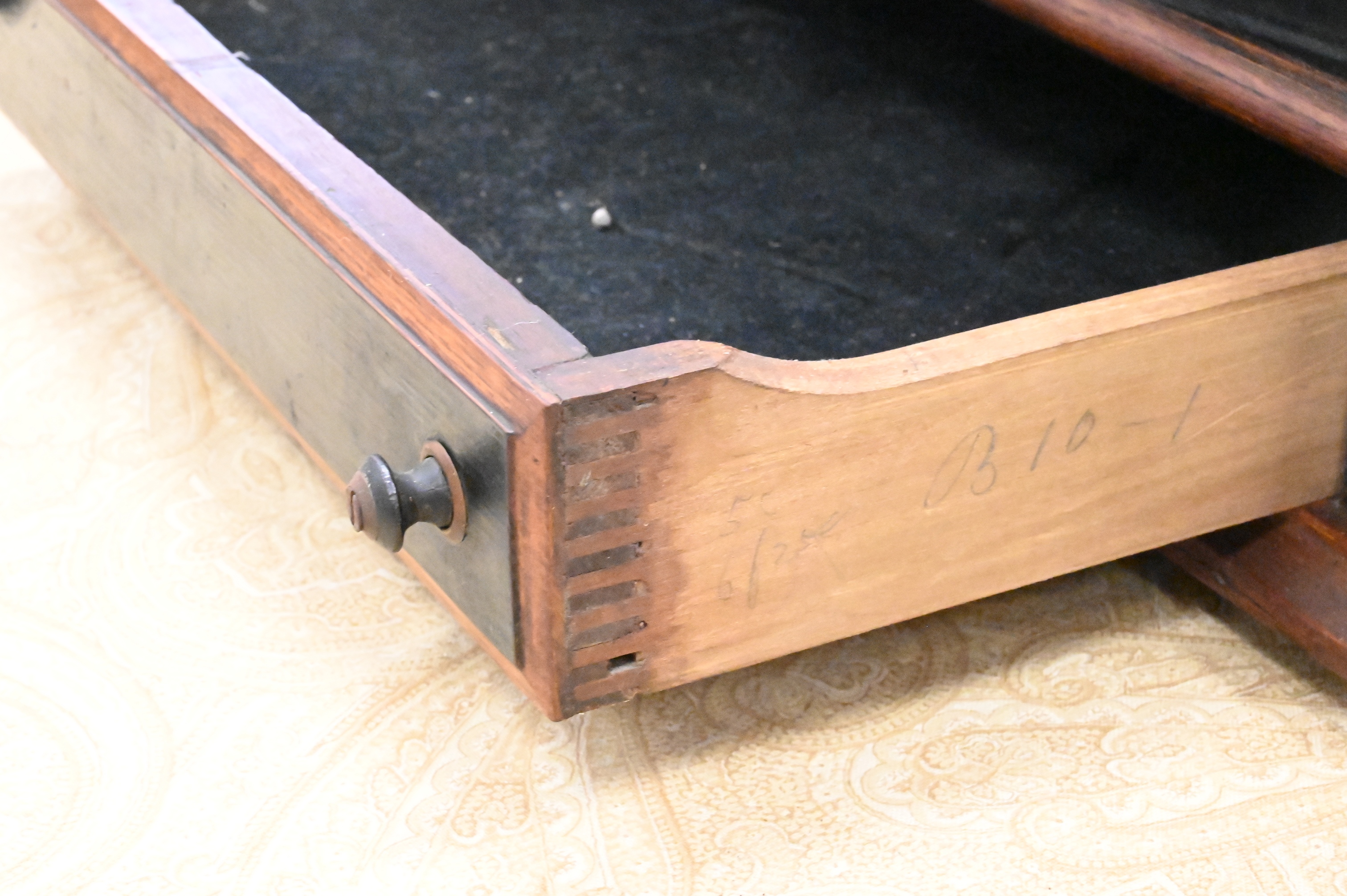with glass front drawer, nine drawers, eight glass