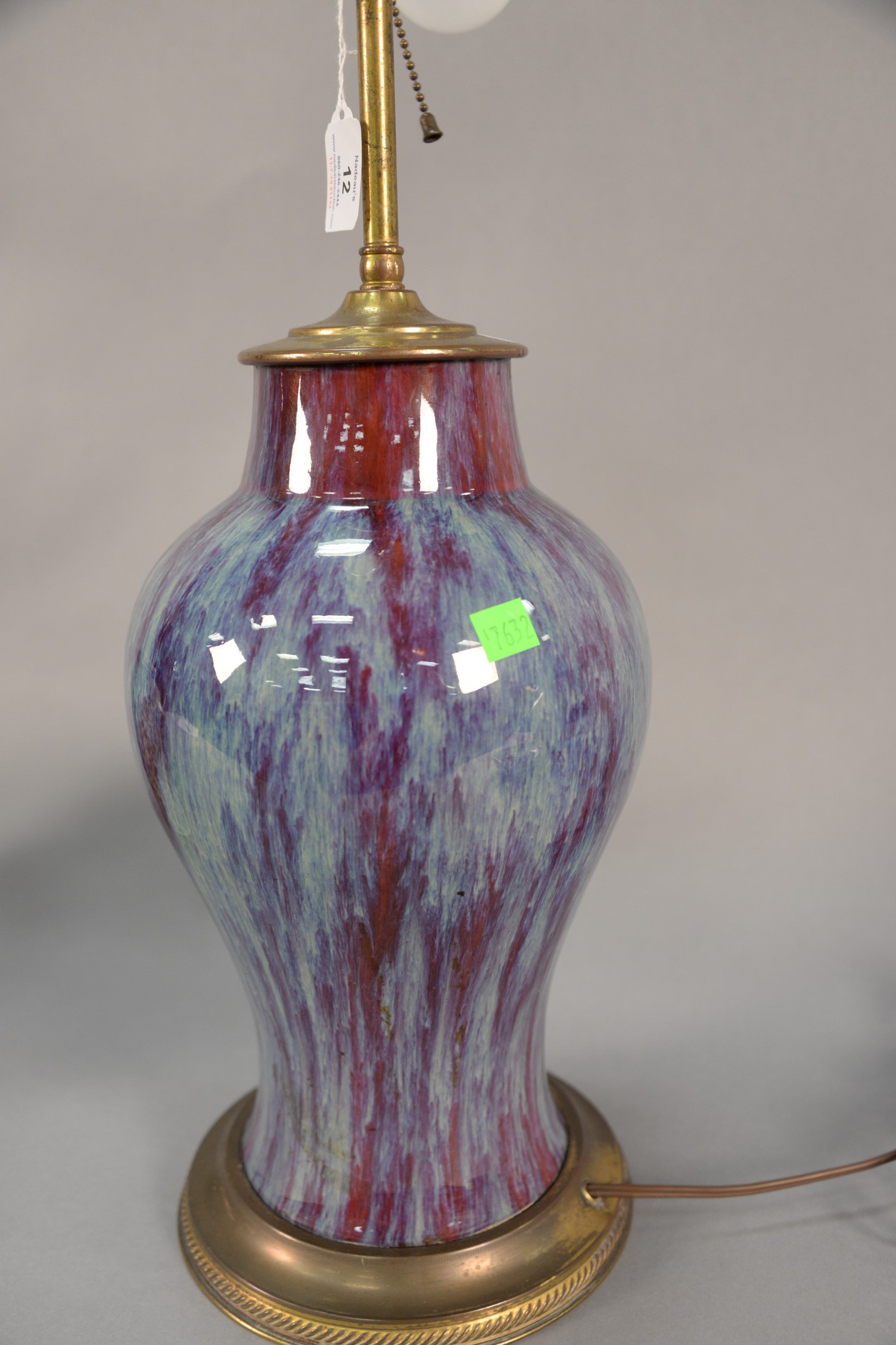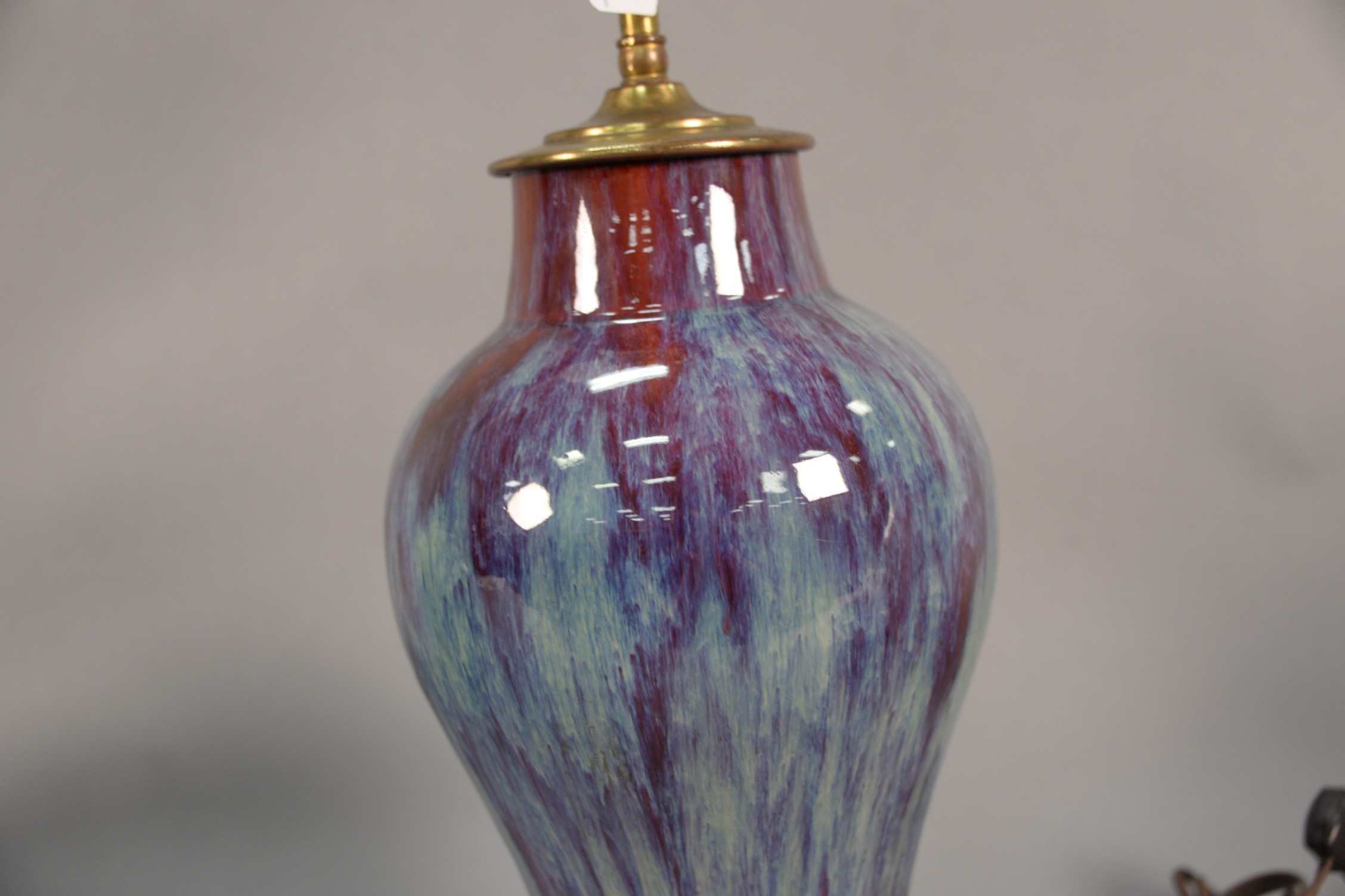 Chinese flambe baluster form vase made into a lamp. vase ht. 12 1/2 in.