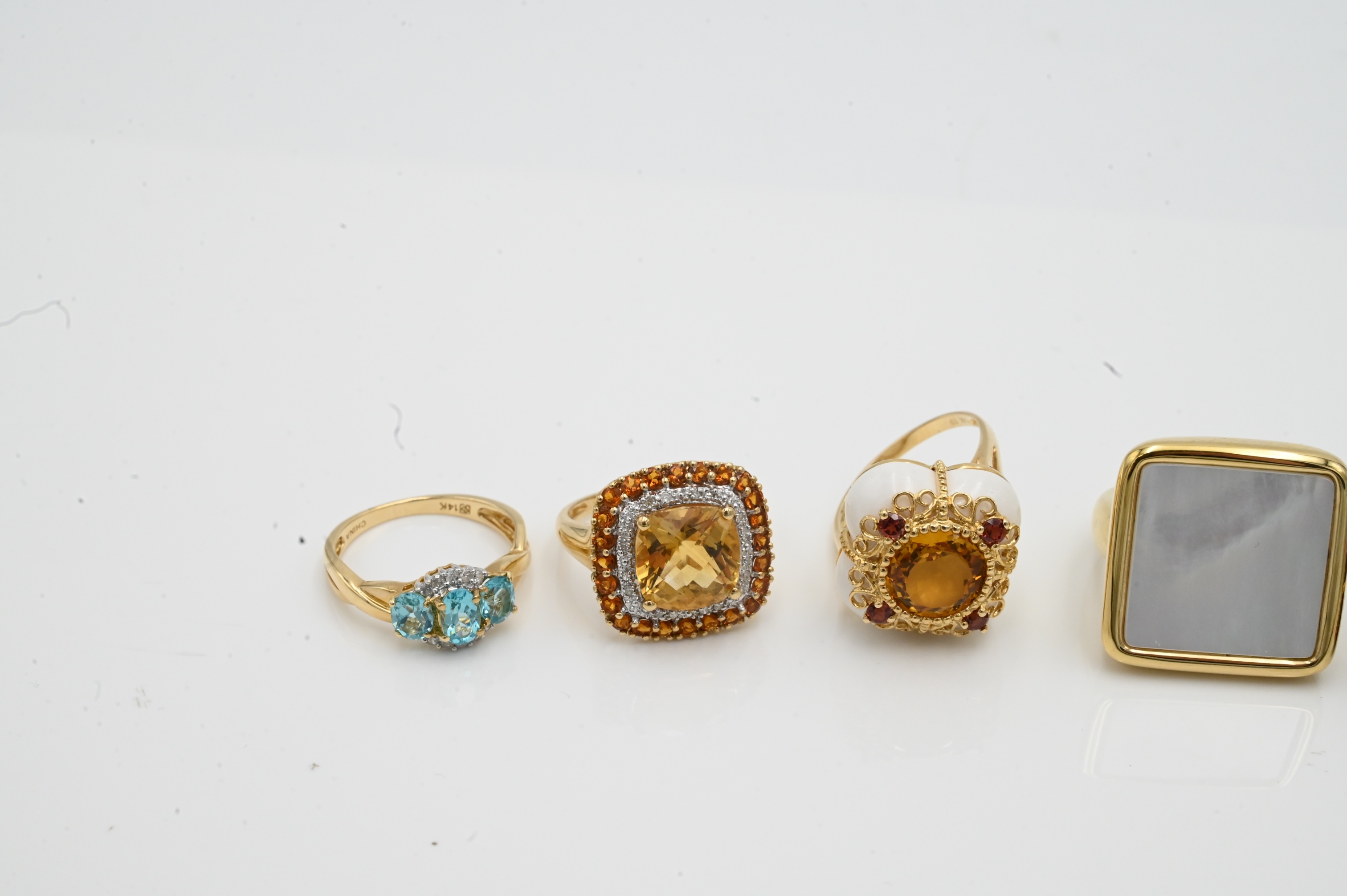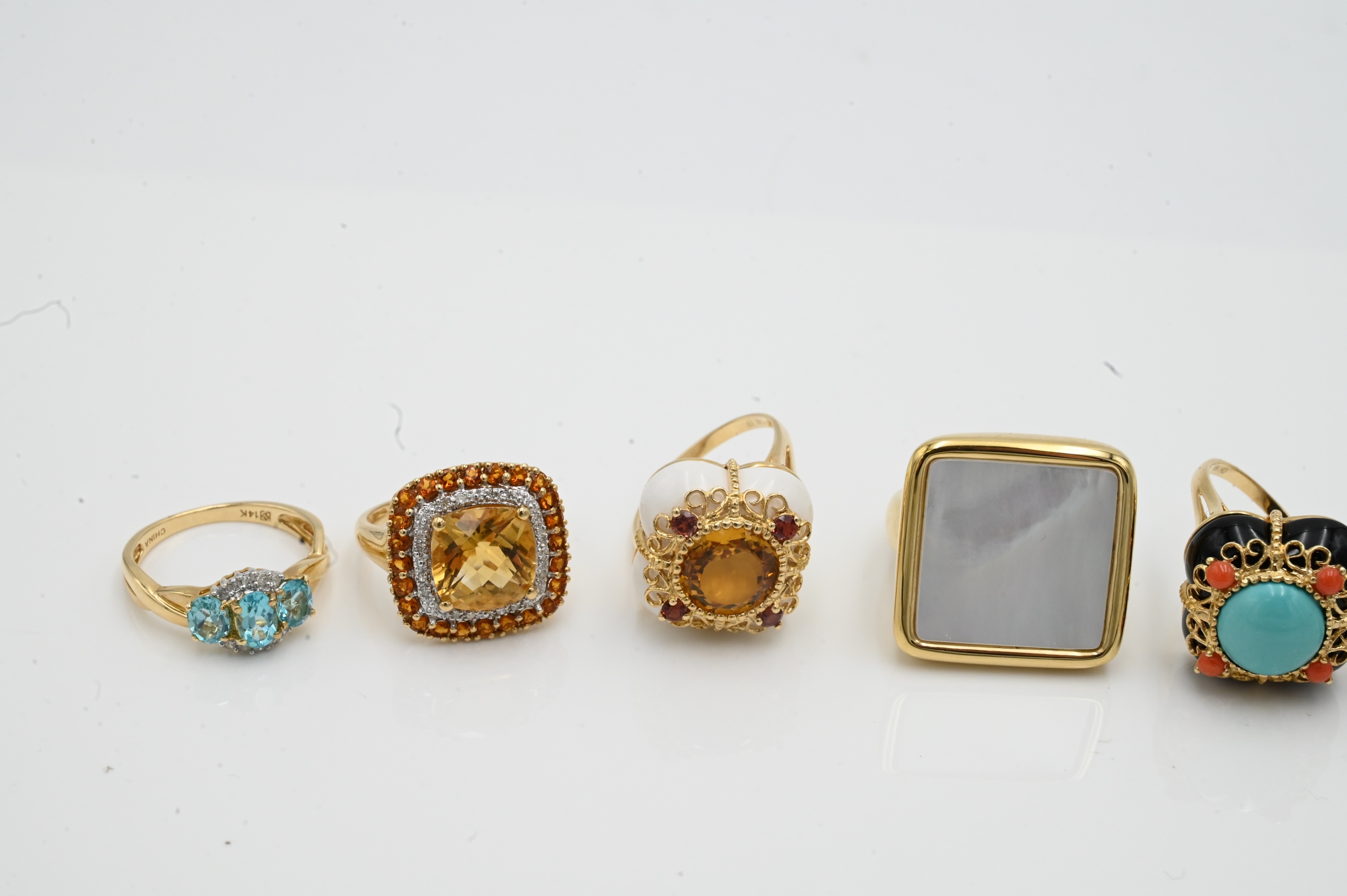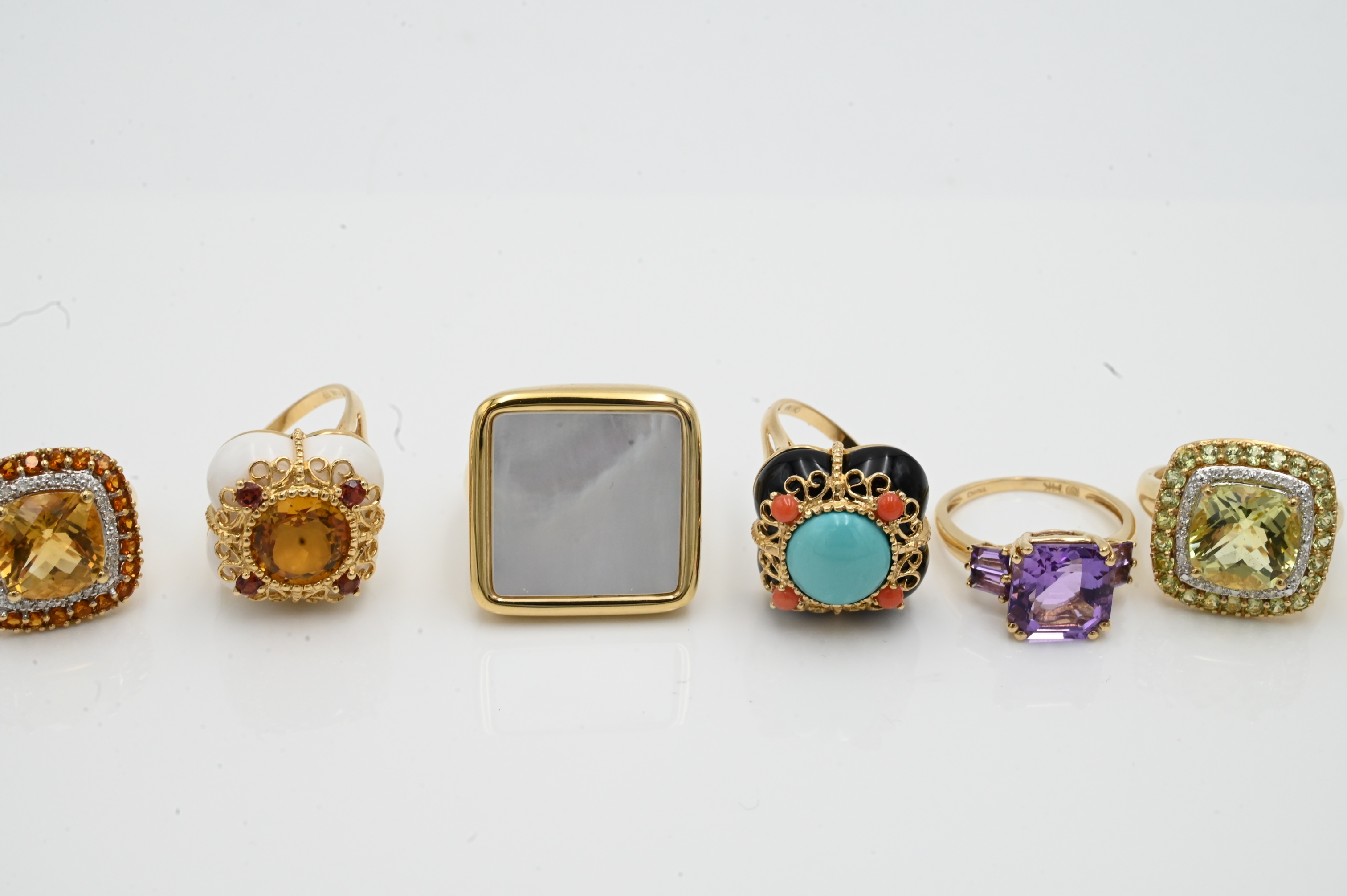 Eight Rings Marked 14 Karat, F.P. China, total weight 40.8 grams.