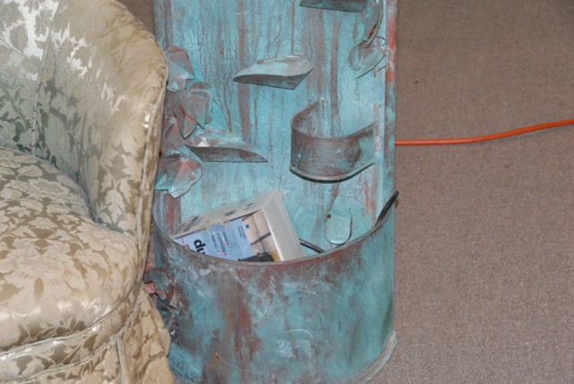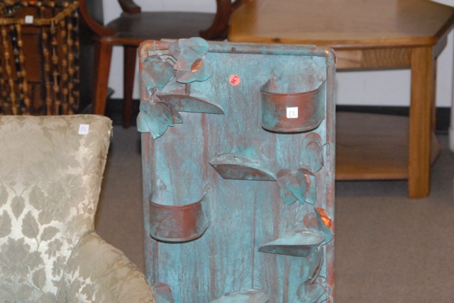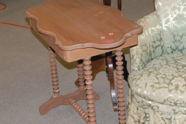 Group lot to include a cottage table, fern stand, upholstered chair, copper fountain and doll.