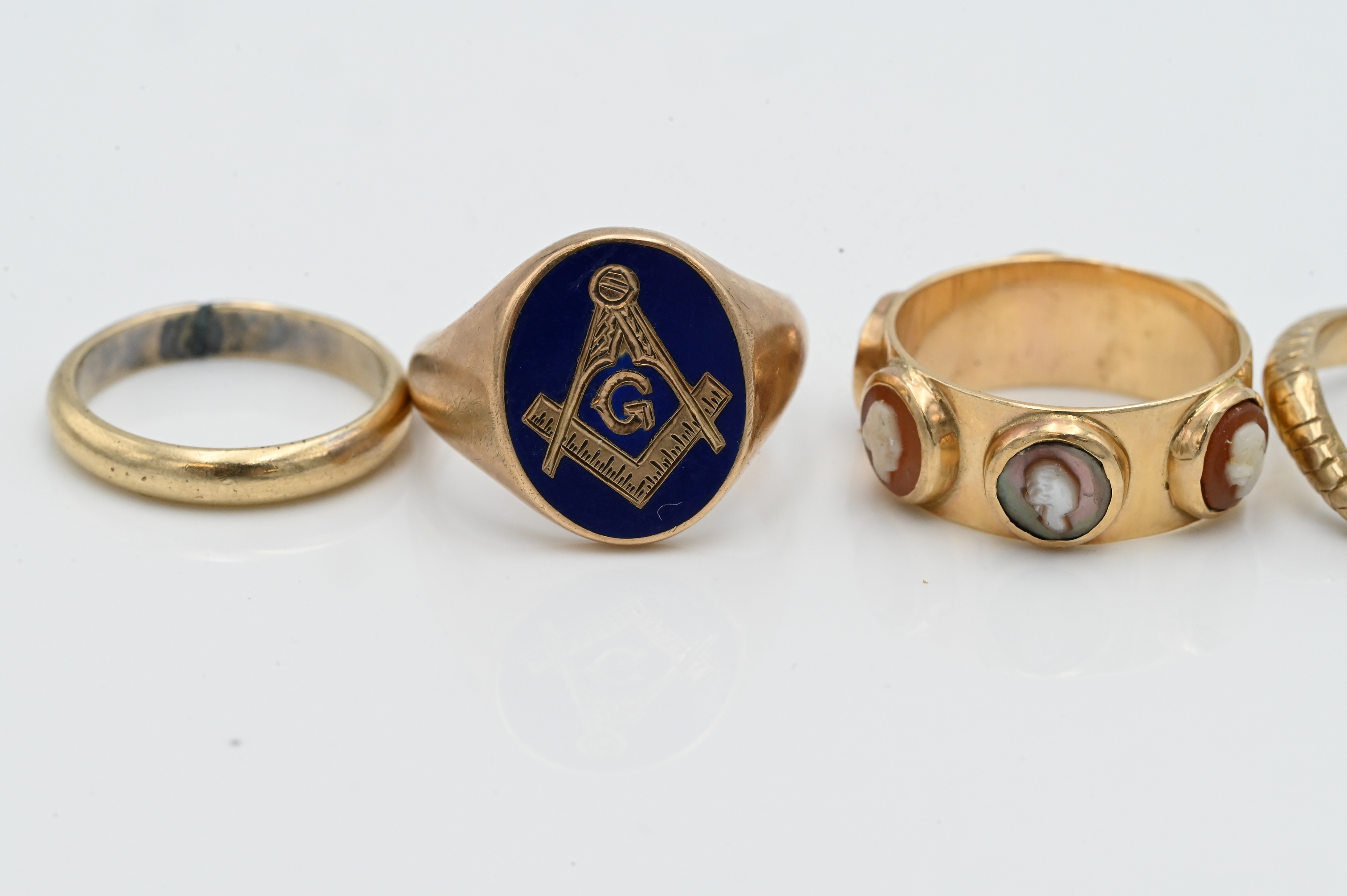 Lot 12: Group of Five 10K Yellow Gold Rings