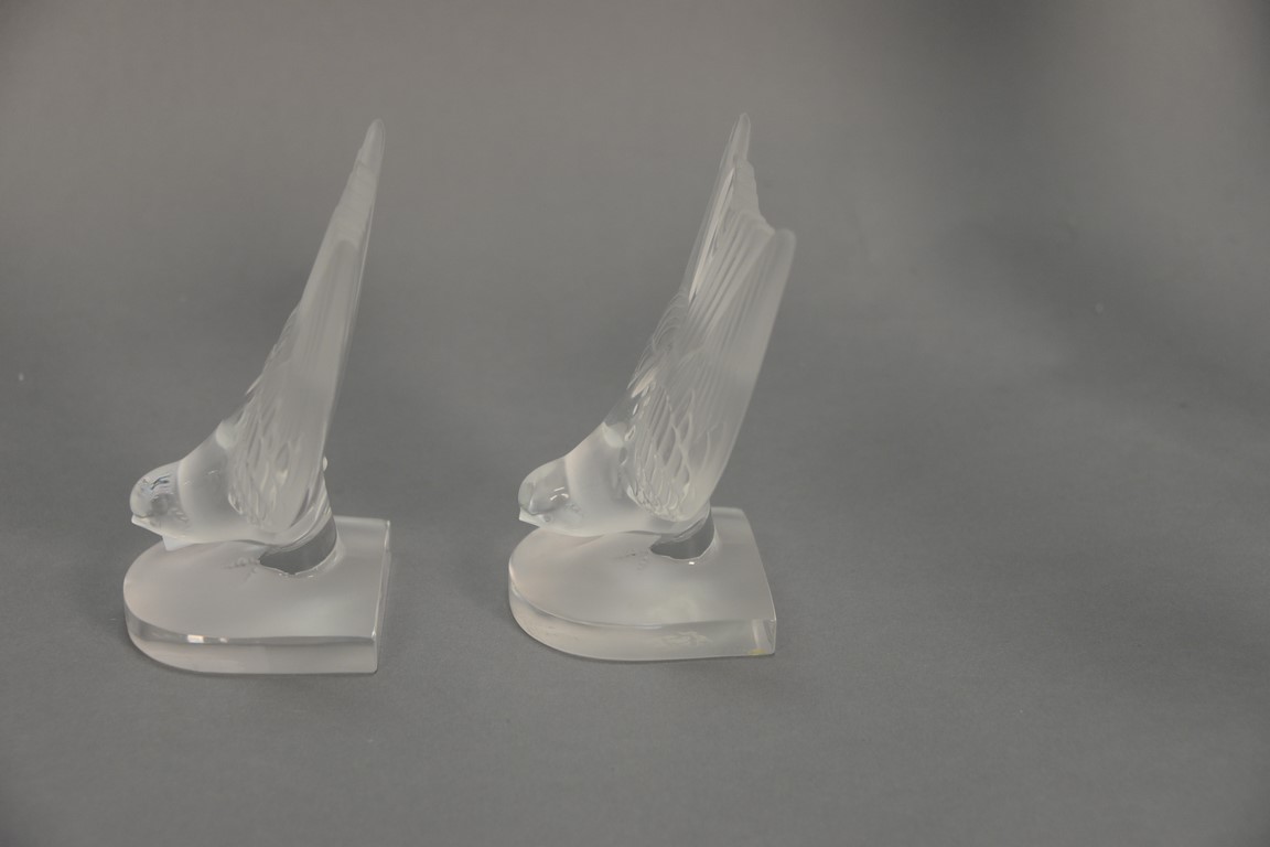 Lalique pair of crystal clear and frosted bird book ends signed Lalique France. ht. 6 in.