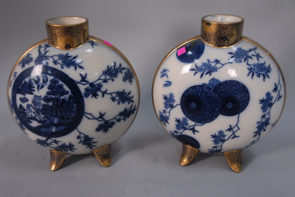 Pair of Japanese style moon flasks form with feet minute chip on one foot.