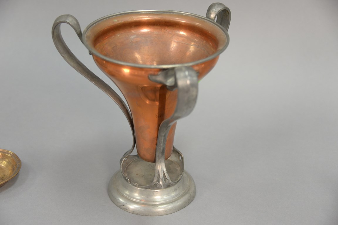 Pairpoint triple handle copper and pewter trophy. ht. 9 in.