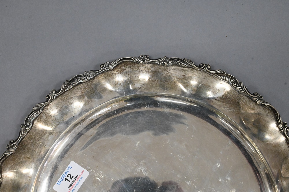 Peggy Page Sterling Silver Round Tray, marked Peggy Page Mexico 925, diameter 14 1/2 inches, 39 t.oz.